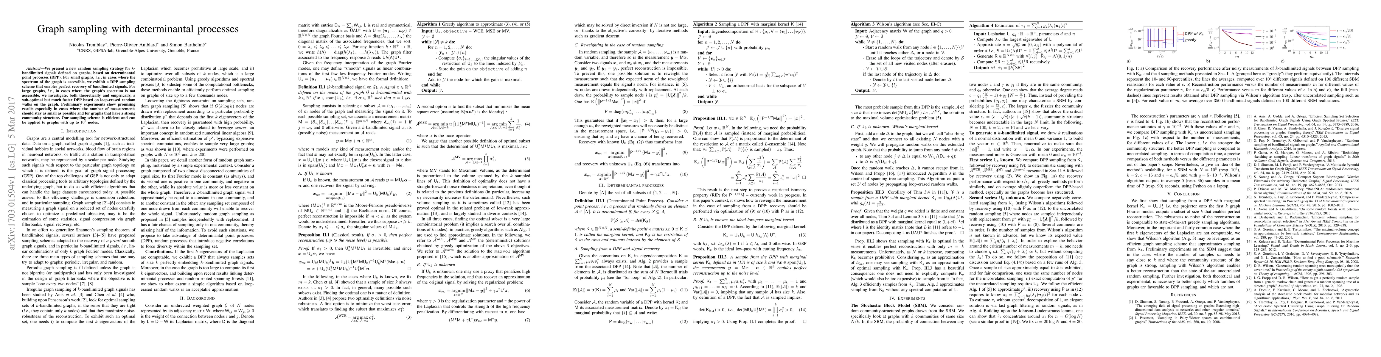 Researchers introduce a new method for sampling k-bandlimited signals on graphs using determinantal point processes, offering efficient recovery in small graphs and sub-optimal but fast results in large graphs with strong community structures.