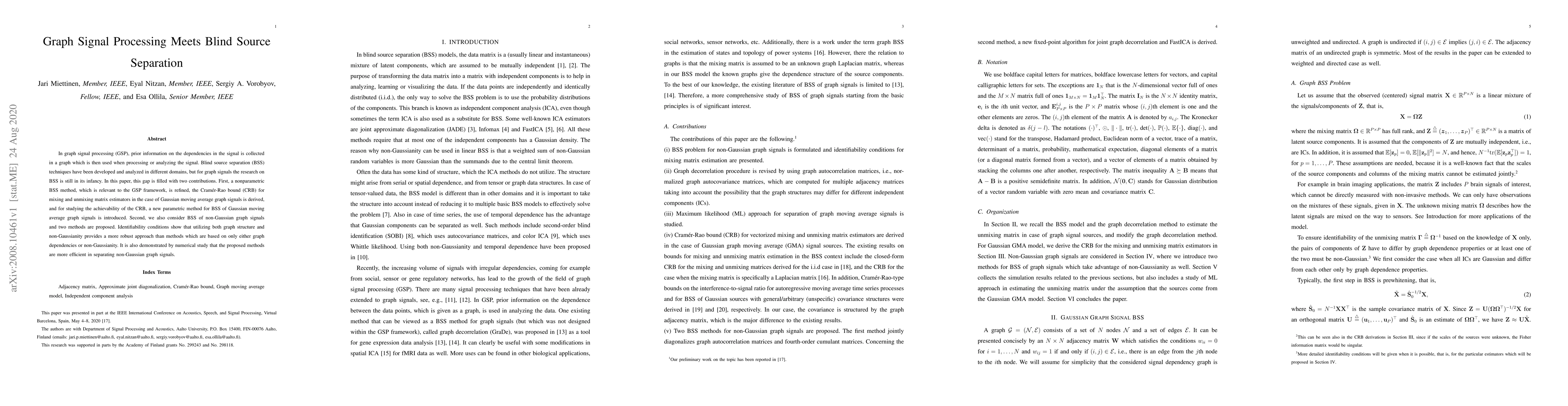 Researchers developed new blind source separation methods for graph signals, improving efficiency and robustness in separating Gaussian and non-Gaussian signals.