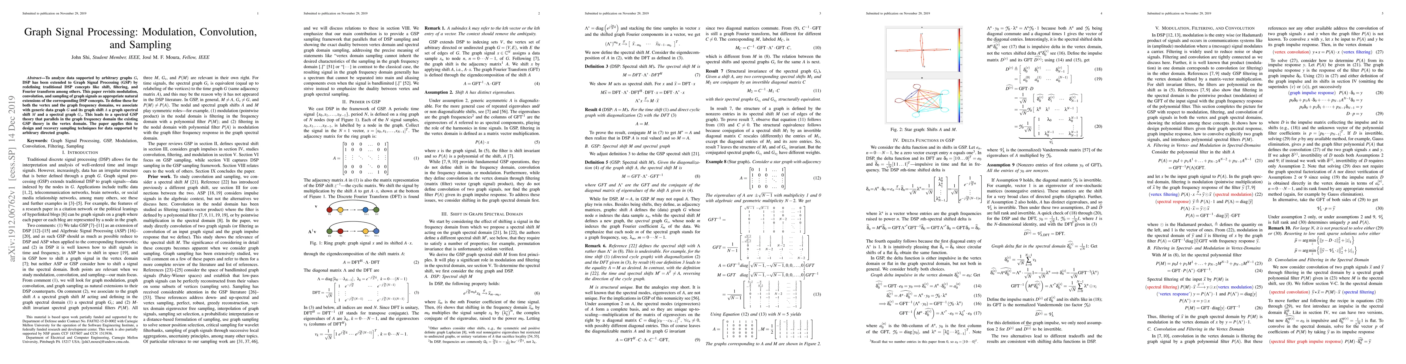 This paper extends Digital Signal Processing (DSP) concepts to Graph Signal Processing (GSP) by redefining modulation, convolution, and sampling for graph signals. It introduces a spectral GSP theory that parallels the vertex domain theory, enabling the design and recovery of sampling techniques for data on arbitrary directed graphs.