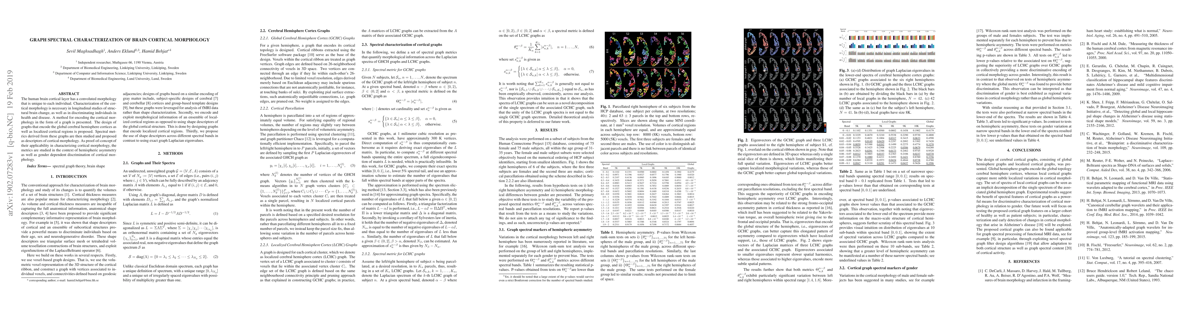 The human brain cortical layer has a convoluted morphology that is unique to each individual. Characterization of the cortical morphology is necessary in longitudinal studies of structural brain change, as well as in discriminating individuals in health and disease. A method for encoding the cortical morphology in the form of a graph is presented. The design of graphs that encode the global cerebral hemisphere cortices as well as localized cortical regions is proposed. Spectral metrics derived from these graphs are then studied and proposed as descriptors of cortical morphology. As proof-of-concept of their applicability in characterizing cortical morphology, the metrics are studied in the context of hemispheric asymmetry as well as gender dependent discrimination of cortical morphology.