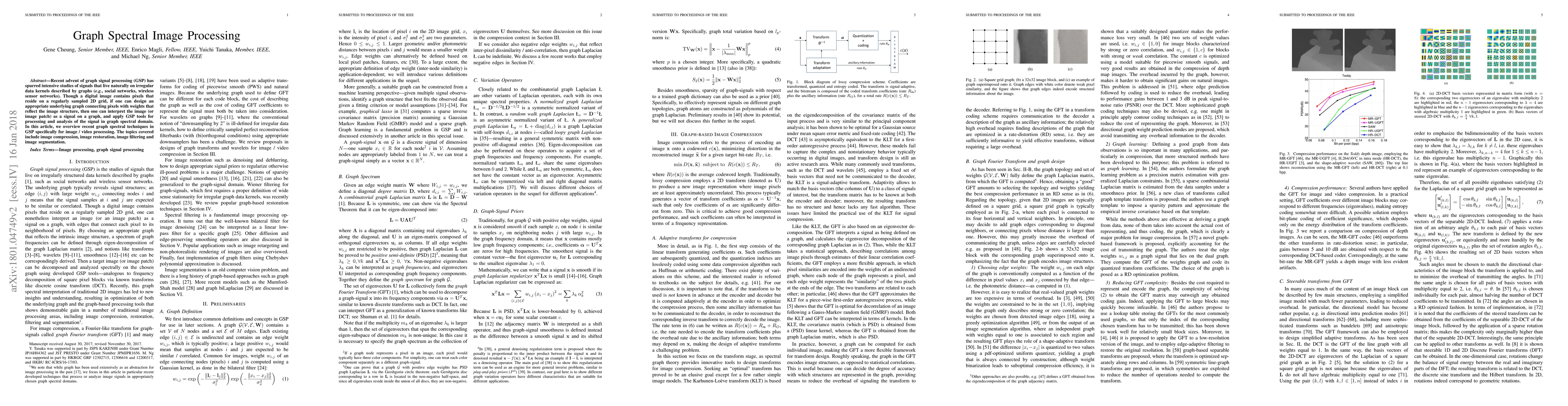 This paper reviews recent advancements in graph spectral techniques for image processing, applying graph signal processing tools to interpret images as signals on a graph for tasks like compression, restoration, filtering, and segmentation.