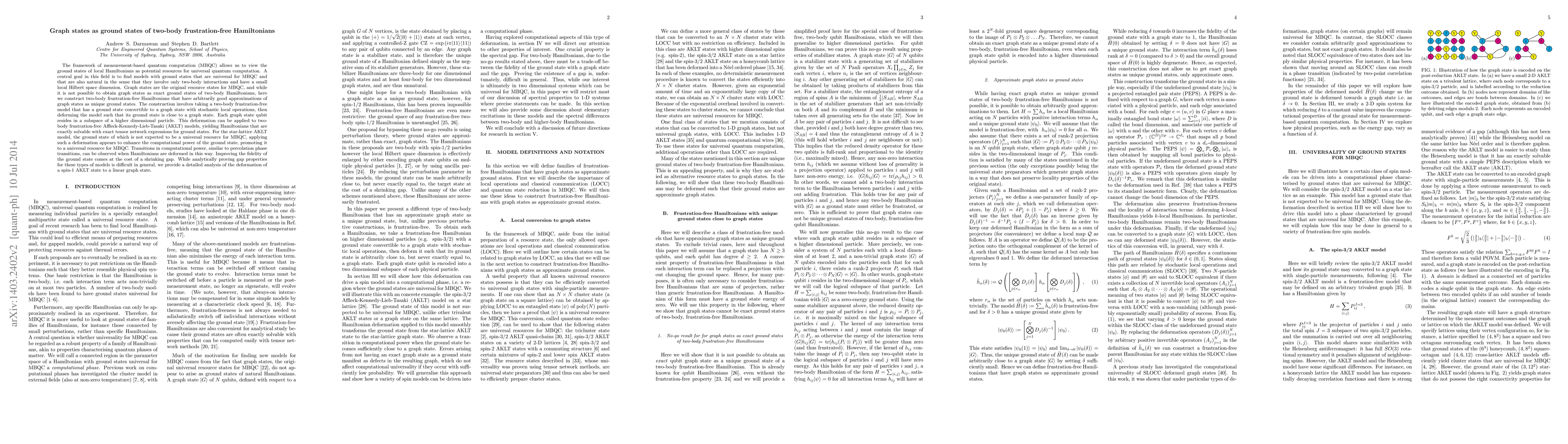 This paper constructs two-body frustration-free Hamiltonians that approximate graph states as unique ground states, enhancing the computational power of these states for measurement-based quantum computation. The deformation of two-body models like the AKLT model transforms their ground states into near-graph states, though it reduces the energy gap.