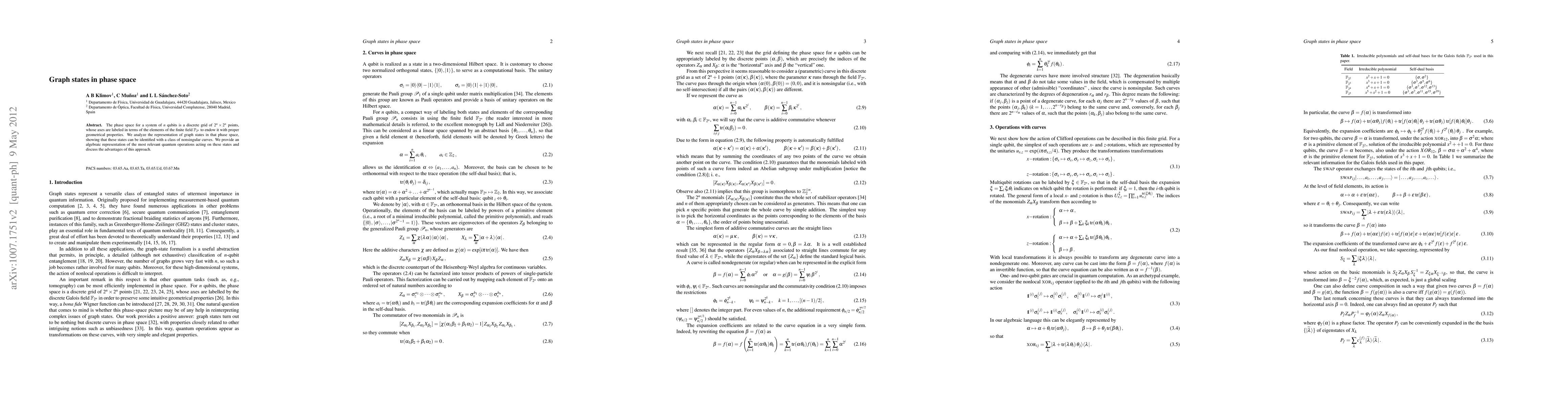 The phase space for a system of $n$ qubits is a discrete grid of $2^{n} \times 2^{n}$ points, whose axes are labeled in terms of the elements of the finite field $\Gal{2^n}$ to endow it with proper geometrical properties. We analyze the representation of graph states in that phase space, showing that these states can be identified with a class of non-singular curves. We provide an algebraic representation of the most relevant quantum operations acting on these states and discuss the advantages of this approach.