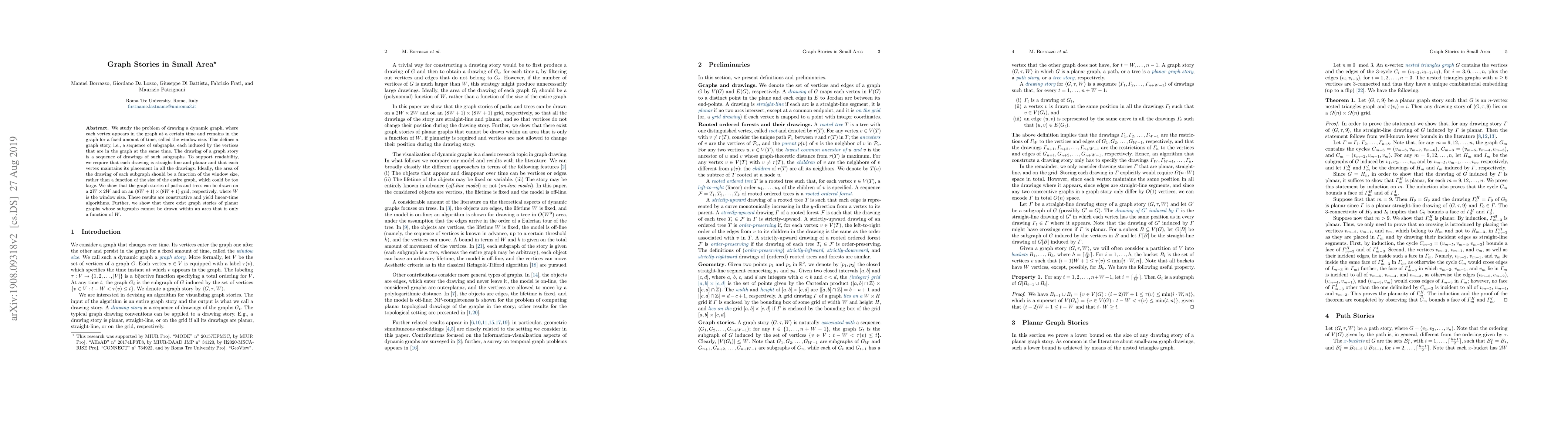We study the problem of drawing a dynamic graph, where each vertex appears in the graph at a certain time and remains in the graph for a fixed amount of time, called the window size. This defines a graph story, i.e., a sequence of subgraphs, each induced by the vertices that are in the graph at the same time. The drawing of a graph story is a sequence of drawings of such subgraphs. To support readability, we require that each drawing is straight-line and planar and that each vertex maintains its placement in all the drawings. Ideally, the area of the drawing of each subgraph should be a function of the window size, rather than a function of the size of the entire graph, which could be too large. We show that the graph stories of paths and trees can be drawn on a $2W \times 2W$ and on an $(8W + 1) \times (8W + 1)$ grid, respectively, where $W$ is the window size. These results are constructive and yield linear-time algorithms. Further, we show that there exist graph stories of planar graphs whose subgraphs cannot be drawn within an area that is only a function of $W$.