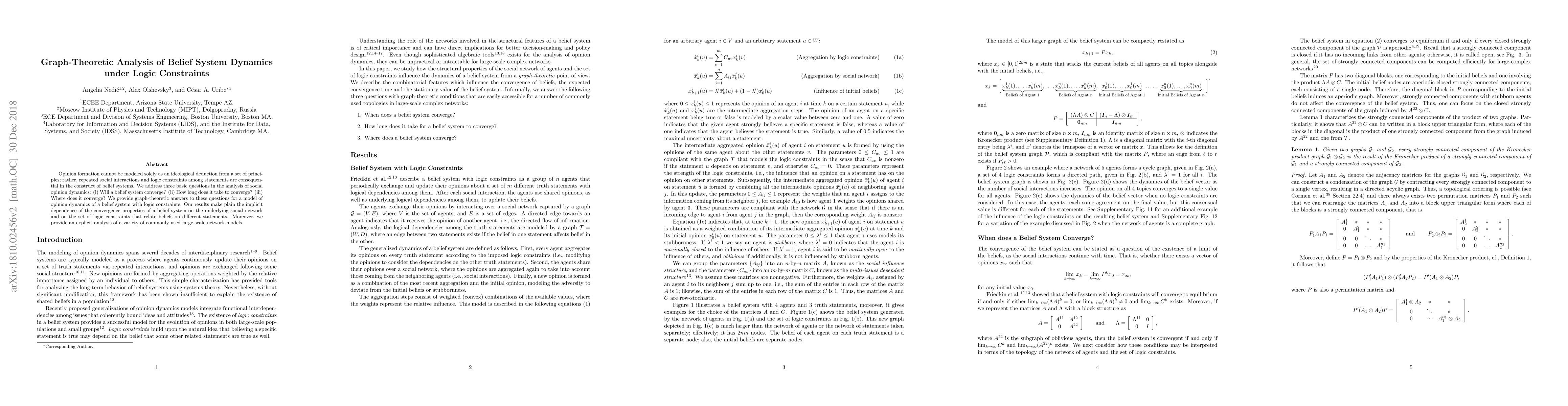 A study uses graph theory to analyze how social interactions influence belief systems under logical constraints, exploring convergence properties and their dependence on network structure and logic rules.