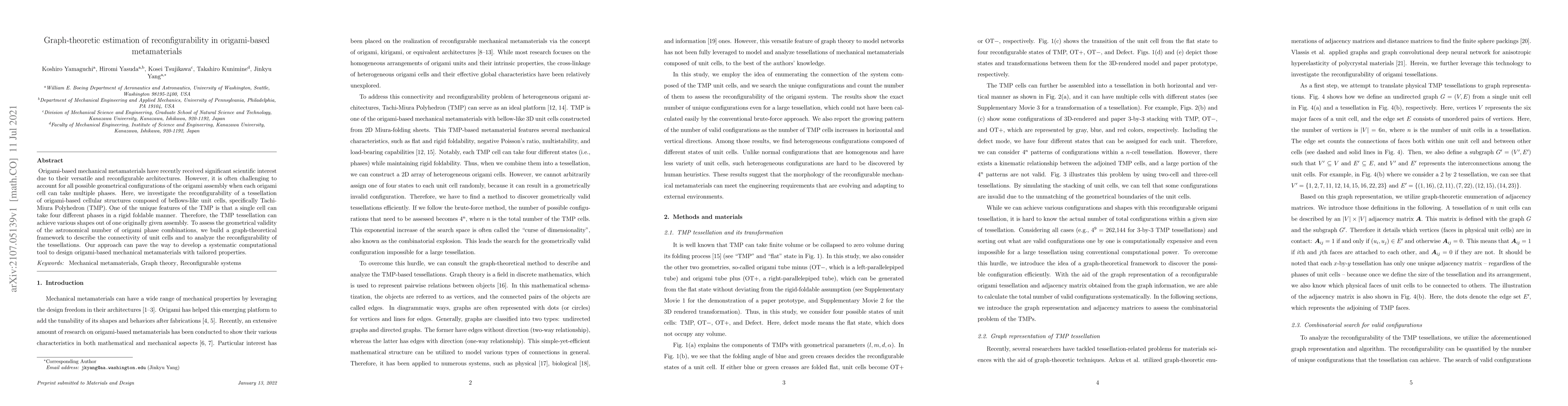 This paper develops a graph-theoretical framework to assess the reconfigurability of origami-based metamaterials, specifically focusing on the Tachi-Miura Polyhedron (TMP) tessellation. The proposed method aims to systematically analyze the geometrical validity of the numerous possible configurations of the TMP, facilitating the design of versatile origami-based mechanical systems.