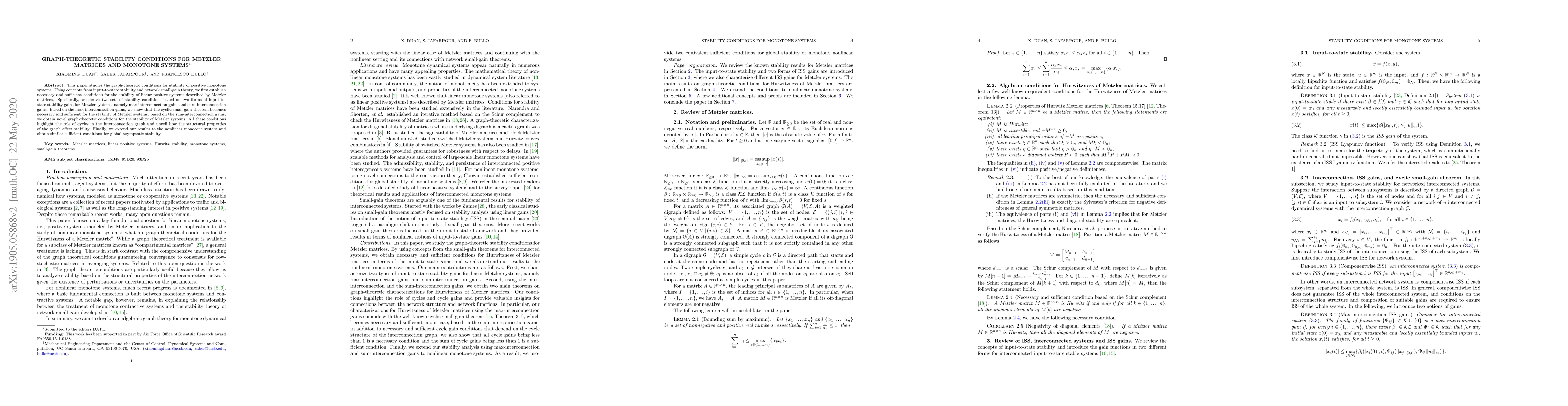 This paper studies the graph-theoretic conditions for stability of positive monotone systems. Using concepts from input-to-state stability and network small-gain theory, we first establish necessary and sufficient conditions for the stability of linear positive systems described by Metzler matrices. Specifically, we derive two sets of stability conditions based on two forms of input-to-state stability gains for Metzler systems, namely max-interconnection gains and sum-interconnection gains. Based on the max-interconnection gains, we show that the cyclic small-gain theorem becomes necessary and sufficient for the stability of Metzler systems; based on the sum-interconnection gains, we obtain novel graph-theoretic conditions for the stability of Metzler systems. All these conditions highlight the role of cycles in the interconnection graph and unveil how the structural properties of the graph affect stability. Finally, we extend our results to the nonlinear monotone system and obtain similar sufficient conditions for global asymptotic stability.