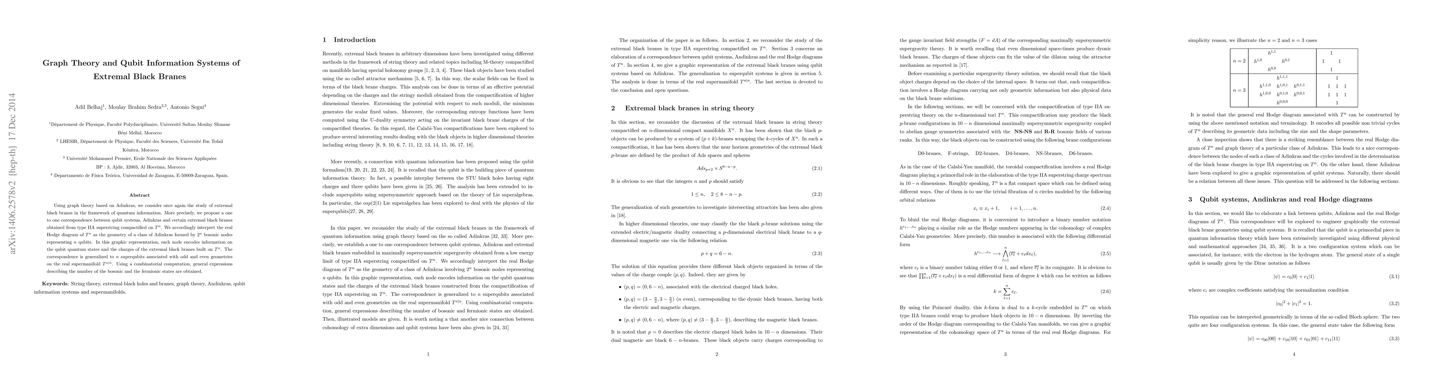 This paper proposes a correspondence between extremal black branes in type IIA superstring theory and qubit systems using graph theory based on Adinkras. It interprets the geometry of T^n as a class of Adinkras representing n qubits, each node encoding qubit quantum states and extremal black brane charges.