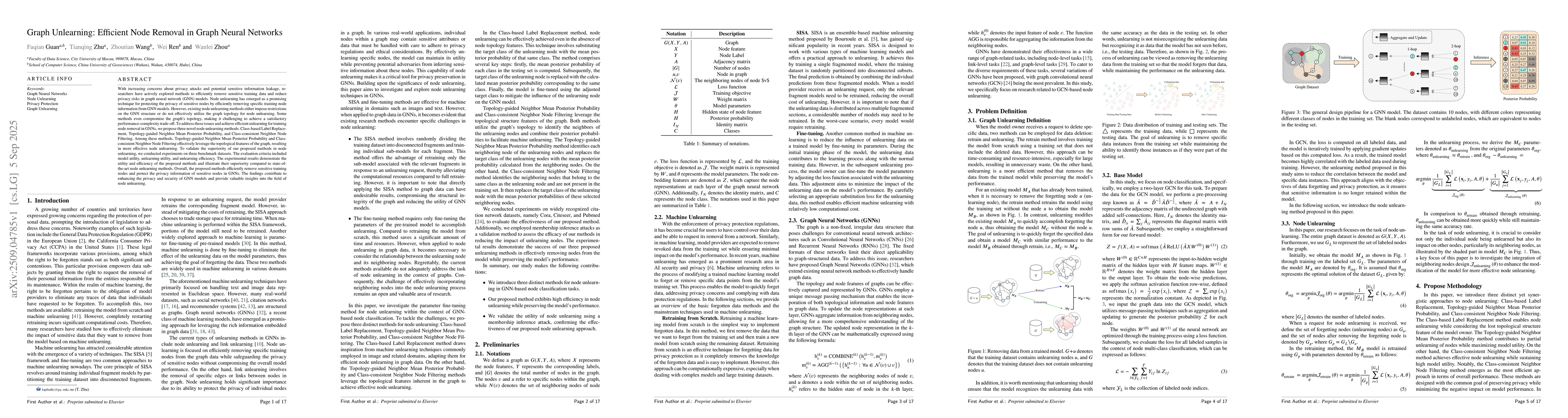 With increasing concerns about privacy attacks and potential sensitive information leakage, researchers have actively explored methods to efficiently remove sensitive training data and reduce privacy risks in graph neural network (GNN) models. Node unlearning has emerged as a promising technique for protecting the privacy of sensitive nodes by efficiently removing specific training node information from GNN models. However, existing node unlearning methods either impose restrictions on the GNN structure or do not effectively utilize the graph topology for node unlearning. Some methods even compromise the graph's topology, making it challenging to achieve a satisfactory performance-complexity trade-off. To address these issues and achieve efficient unlearning for training node removal in GNNs, we propose three novel node unlearning methods: Class-based Label Replacement, Topology-guided Neighbor Mean Posterior Probability, and Class-consistent Neighbor Node Filtering. Among these methods, Topology-guided Neighbor Mean Posterior Probability and Class-consistent Neighbor Node Filtering effectively leverage the topological features of the graph, resulting in more effective node unlearning. To validate the superiority of our proposed methods in node unlearning, we conducted experiments on three benchmark datasets. The evaluation criteria included model utility, unlearning utility, and unlearning efficiency. The experimental results demonstrate the utility and efficiency of the proposed methods and illustrate their superiority compared to state-of-the-art node unlearning methods. Overall, the proposed methods efficiently remove sensitive training nodes and protect the privacy information of sensitive nodes in GNNs. The findings contribute to enhancing the privacy and security of GNN models and provide valuable insights into the field of node unlearning.