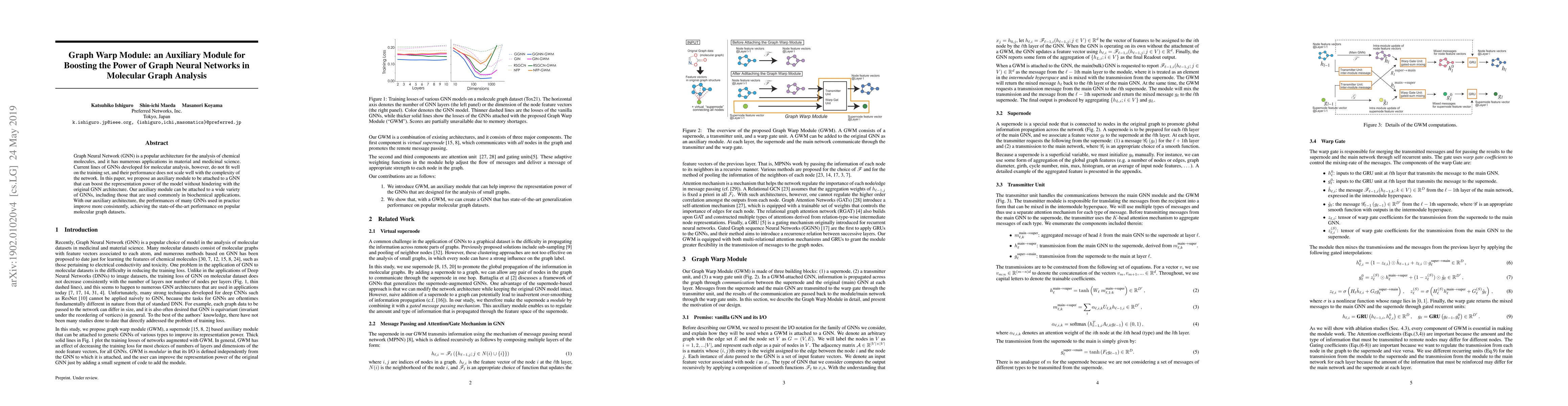 Graph Neural Network (GNN) is a popular architecture for the analysis of chemical molecules, and it has numerous applications in material and medicinal science. Current lines of GNNs developed for molecular analysis, however, do not fit well on the training set, and their performance does not scale well with the complexity of the network. In this paper, we propose an auxiliary module to be attached to a GNN that can boost the representation power of the model without hindering with the original GNN architecture. Our auxiliary module can be attached to a wide variety of GNNs, including those that are used commonly in biochemical applications. With our auxiliary architecture, the performances of many GNNs used in practice improve more consistently, achieving the state-of-the-art performance on popular molecular graph datasets.