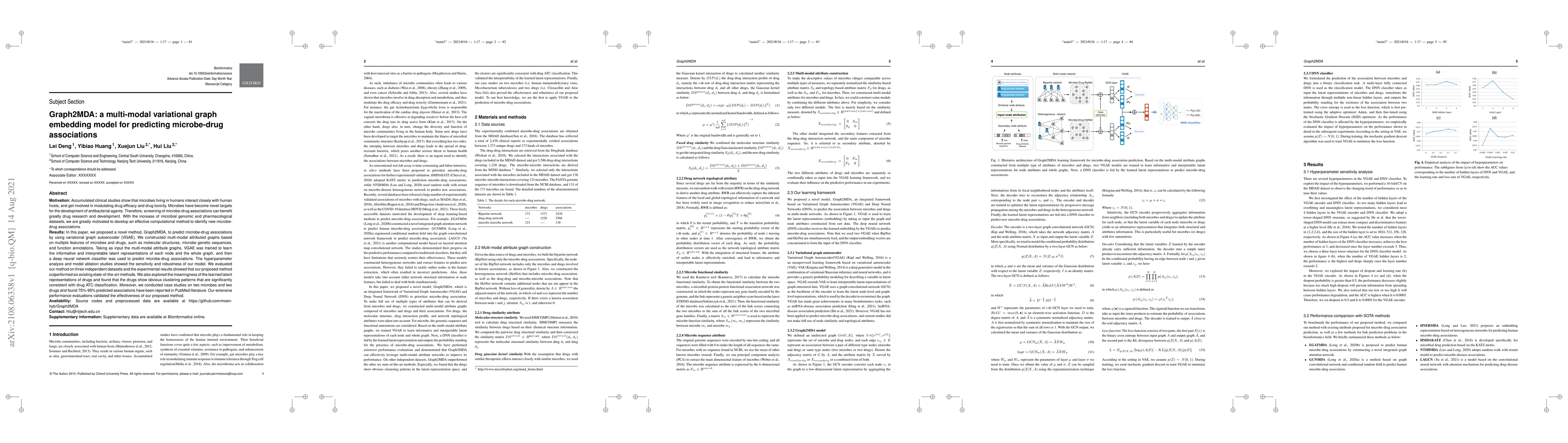 Graph2MDA predicts microbe-drug associations using a multi-modal variational graph embedding model that outperforms existing state-of-the-art methods with 75-95% accuracy in reported PubMed literature.
