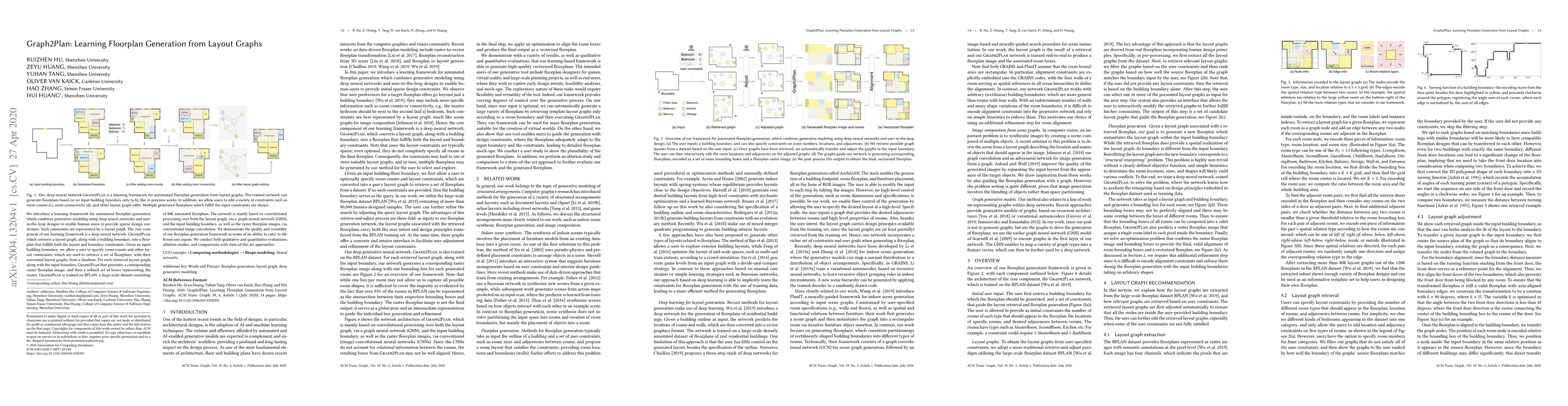 The paper presents Graph2Plan, a deep learning framework for automated floorplan generation that uses a layout graph to incorporate user-defined constraints and generates floorplans that meet both layout and boundary requirements. The model is trained on a large dataset and combines graph neural networks and image convolutions.