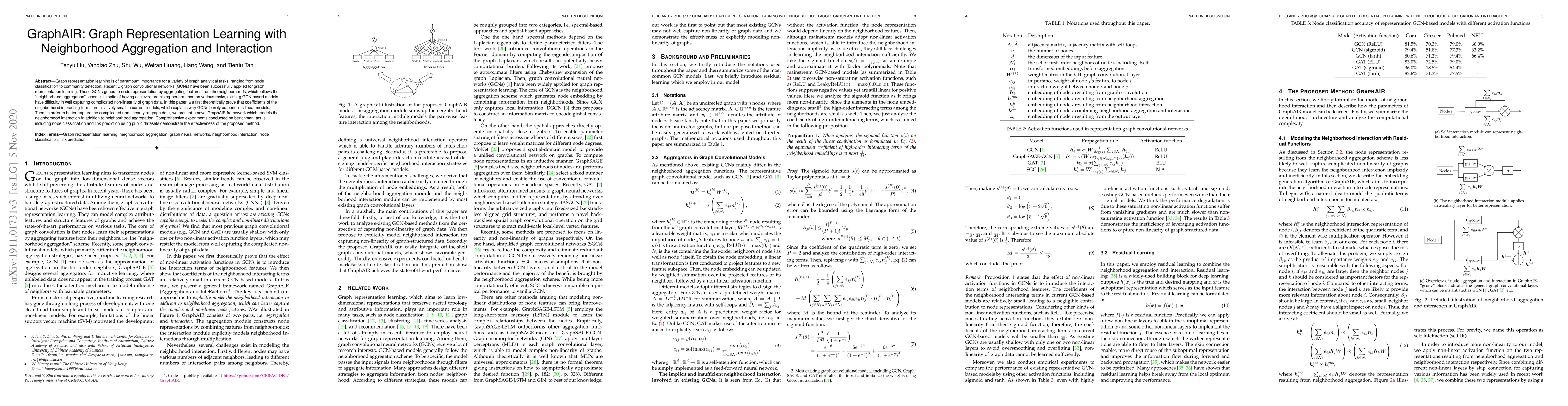This paper introduces GraphAIR, a novel framework for graph representation learning that enhances graph convolutional networks (GCNs) by modeling neighborhood interactions in addition to aggregation. Experiments show that GraphAIR better captures the non-linearity of graph data, leading to improved performance on node classification and link prediction tasks.