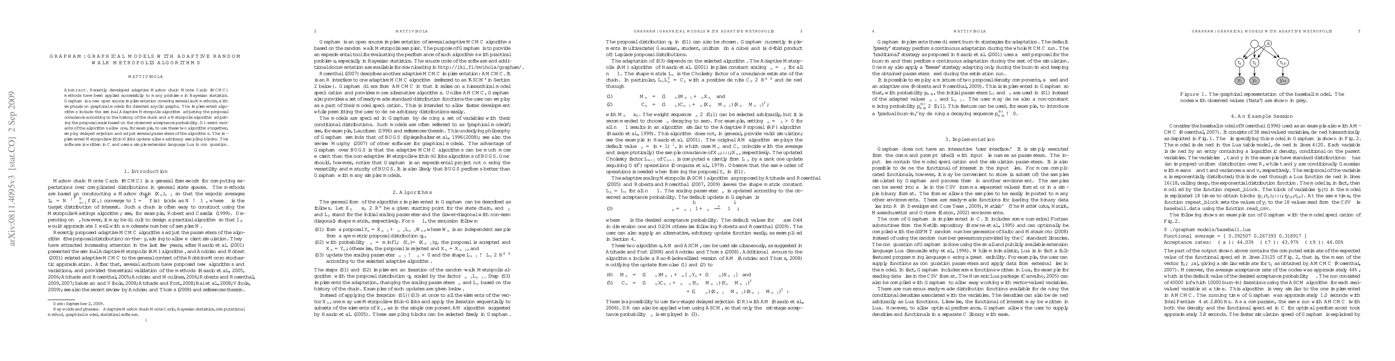 Grapham is an open-source implementation of adaptive MCMC algorithms for graphical models, particularly focusing on directed acyclic graphs. It includes adaptive Metropolis and Metropolis-within-Gibbs algorithms, allowing flexible parameter adjustments and sampling blocks.