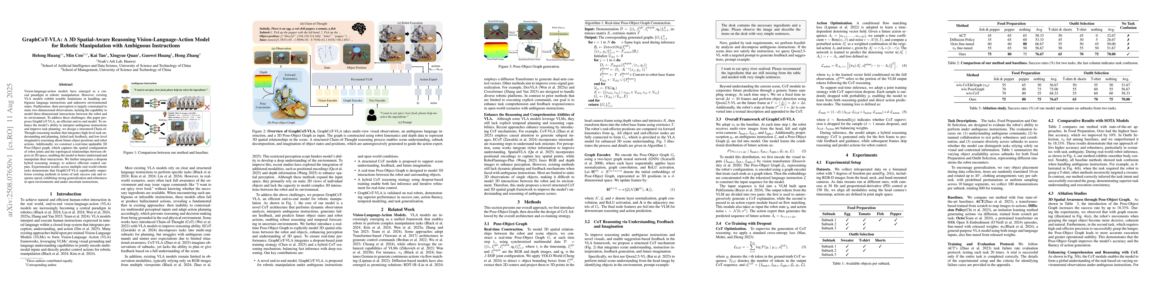The paper proposes GraphCoT-VLA, a 3D spatial-aware reasoning vision-language-action model for robotic manipulation with ambiguous instructions. It introduces a Chain-of-Thought (CoT) reasoning module and a real-time updatable 3D Pose-Object graph to enhance interpretation of ambiguous instructions, task planning, and 3D spatial understanding.