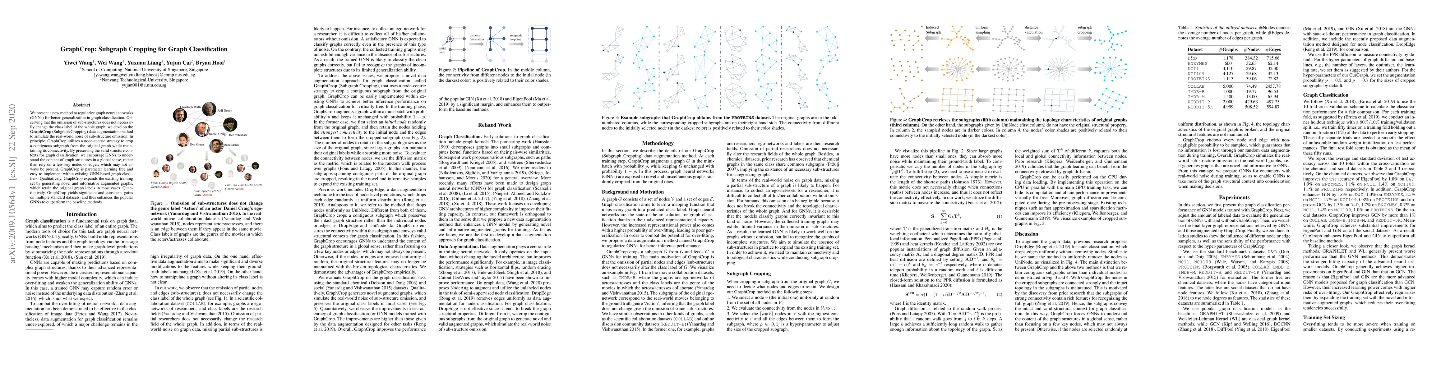 The research introduces GraphCrop, a data augmentation method for graph classification using graph neural networks (GNNs). GraphCrop creates new training graphs by cropping contiguous subgraphs while preserving connectivity, enhancing GNNs' global understanding of graph structures. This method significantly improves performance on various benchmark datasets without additional learnable parameters, making it an effective, easy-to-implement regularization technique for GNNs.