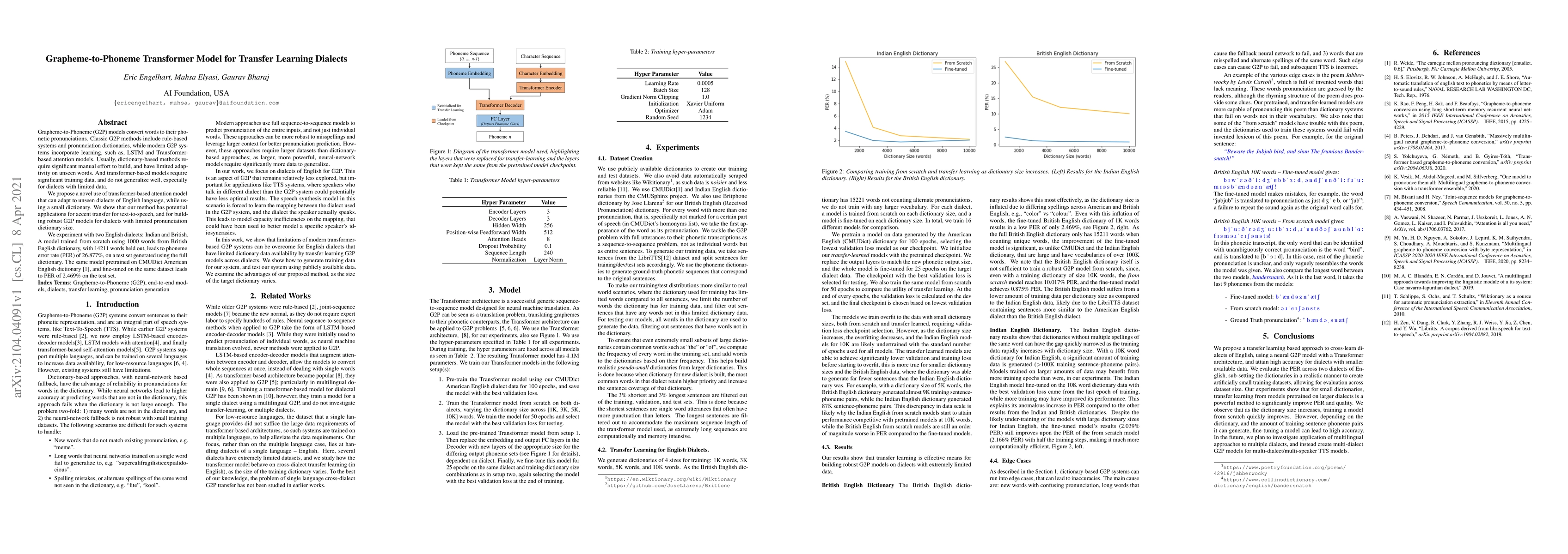 A new transformer-based model adapts to unseen English dialects using a small dictionary, showing promise for accent transfer and robust G2P models for limited data.