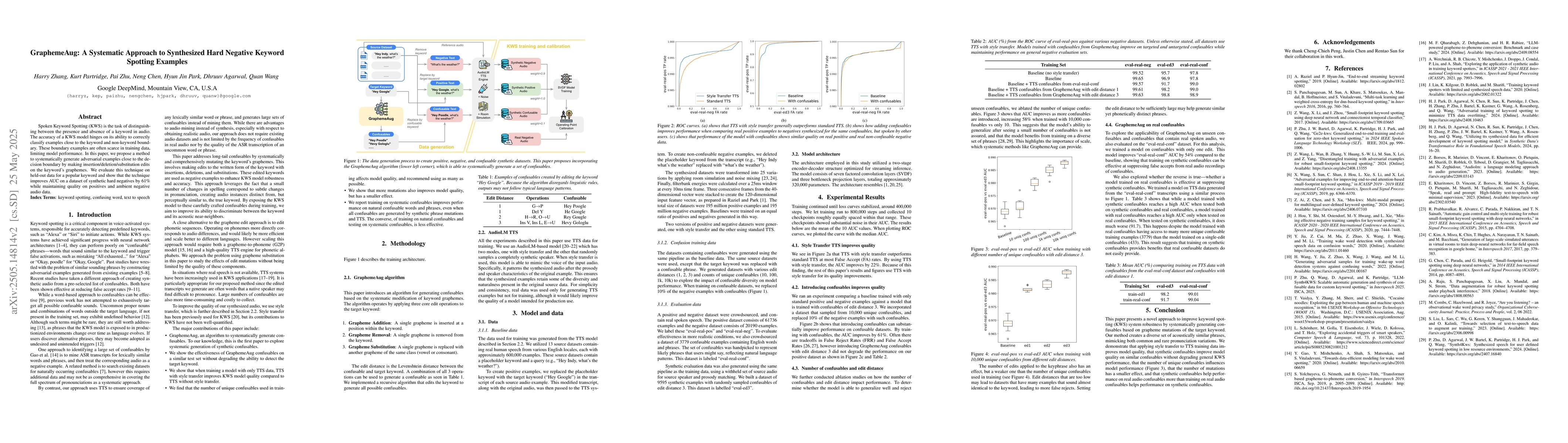 Researchers developed a method to generate adversarial examples of keyword spotting boundary cases through grapheme edits, improving AUC accuracy by 61% on synthetic hard negatives while maintaining performance on positives and ambient audio.