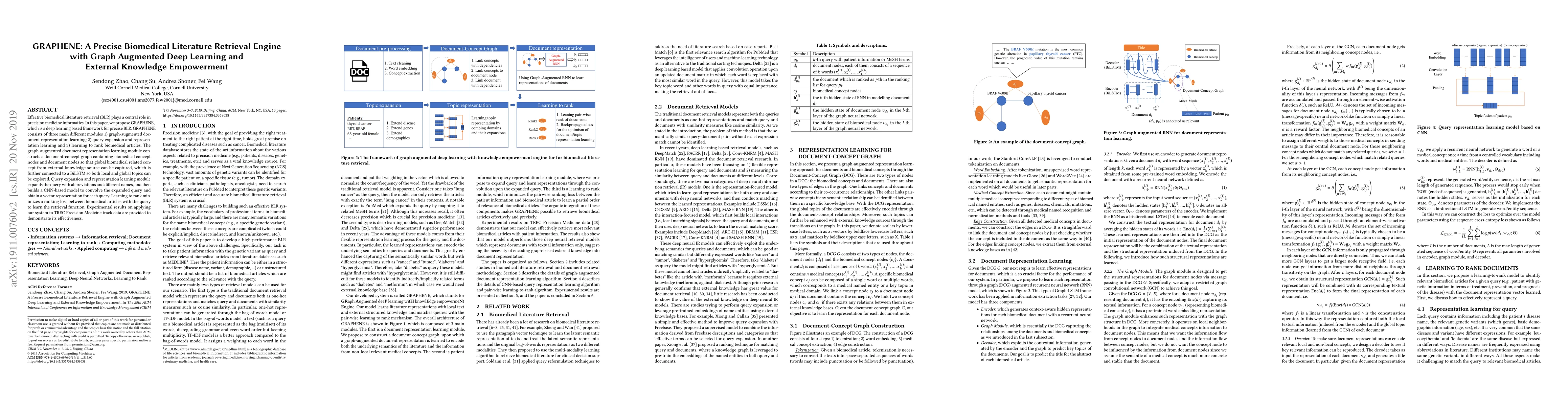GRAPHENE is a deep learning framework for precise biomedical literature retrieval, leveraging graph-augmented document representation, query expansion, and learning to rank to enhance retrieval accuracy. Experimental results show its effectiveness in the TREC Precision Medicine track.