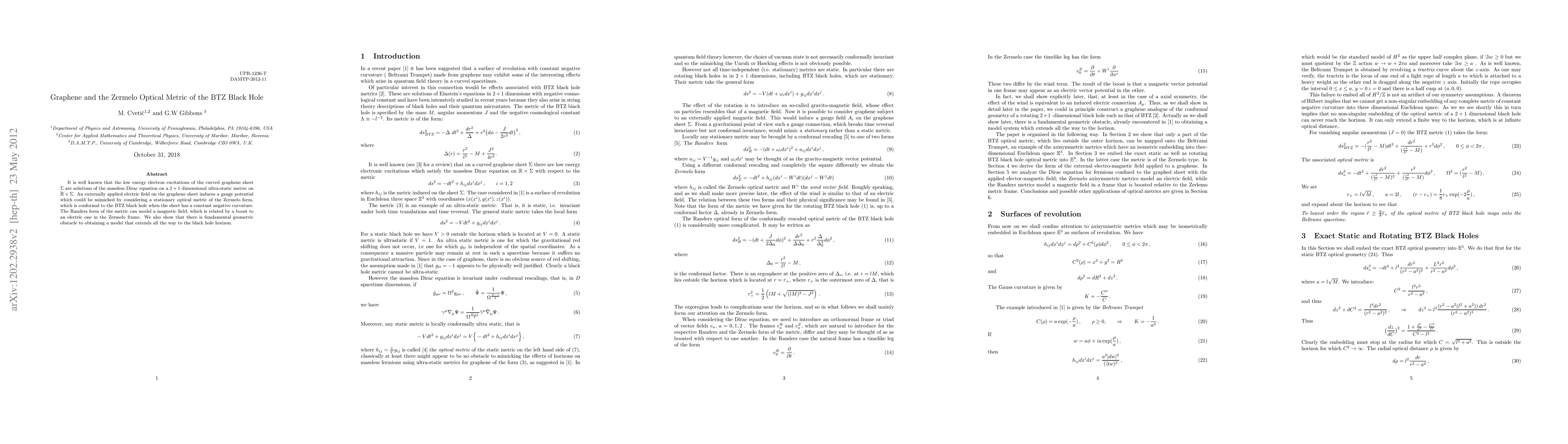 It is well known that the low energy electron excitations of the curved graphene sheet $\Sigma$ are solutions of the massless Dirac equation on a 2+1 dimensional ultra-static metric on ${\Bbb R} \times \Sigma$. An externally applied electric field on the graphene sheet induces a gauge potential which could be mimicked by considering a stationary optical metric of the Zermelo form, which is conformal to the BTZ black hole when the sheet has a constant negative curvature. The Randers form of the metric can model a magnetic field, which is related by a boost to an electric one in the Zermelo frame. We also show that there is fundamental geometric obstacle to obtaining a model that extends all the way to the black hole horizon.