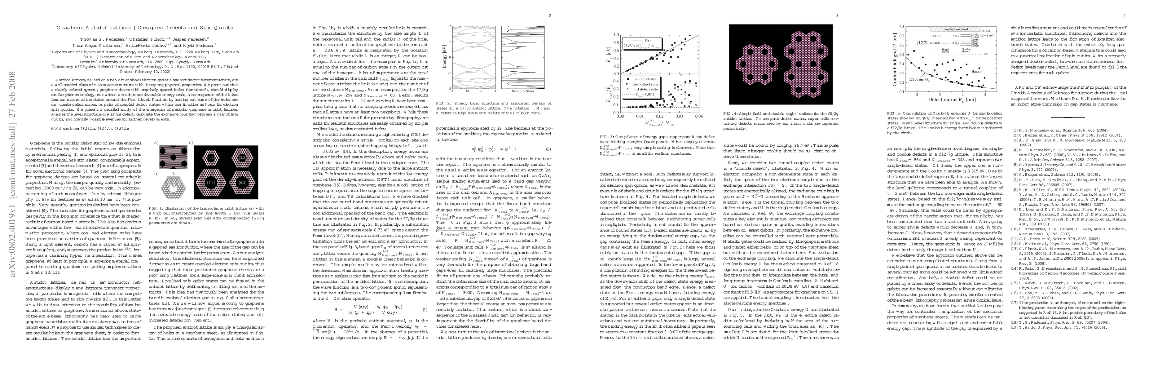 This research investigates graphene sheets with regularly spaced holes, known as antidots, which can host electron spin qubits through engineered defect states. The study analyzes the energetics and level structure of these antidot lattices and the coupling between spin qubits, highlighting their potential for quantum computing applications.