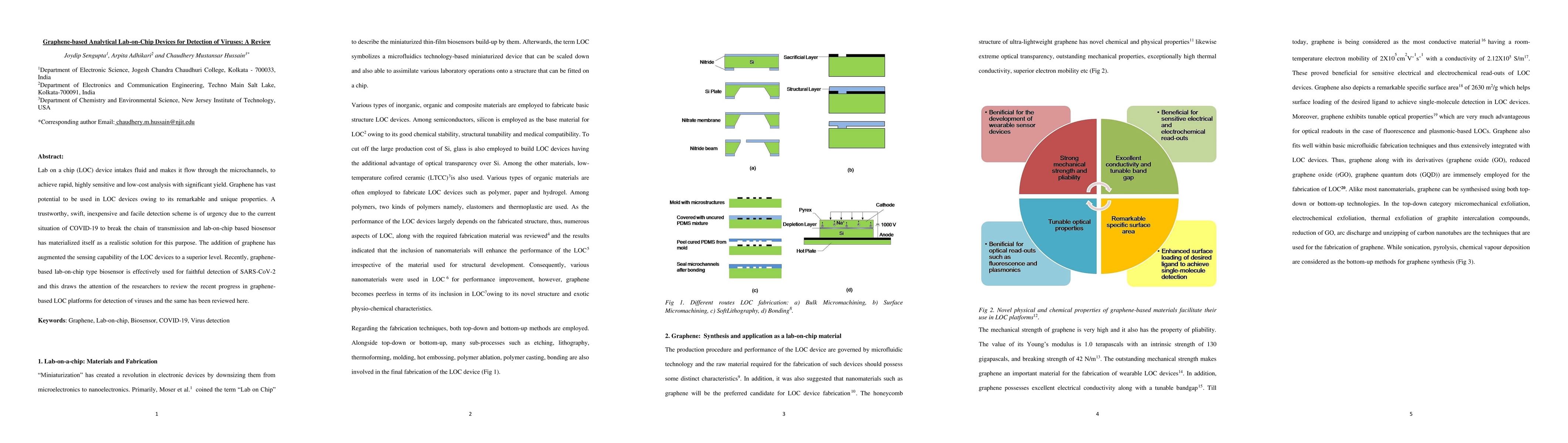Lab on a chip (LOC) device intakes fluid and makes it flow through the microchannels, to achieve rapid, highly sensitive and low-cost analysis with significant yield. Graphene has vast potential to be used in LOC devices owing to its remarkable and unique properties. A trustworthy, swift, inexpensive and facile detection scheme is of urgency due to the current situation of COVID-19 to break the chain of transmission and lab-on-chip based biosensor has materialized itself as a realistic solution for this purpose. The addition of Graphene has augmented the sensing capability of the LOC devices to a superior level. Recently, Graphene-based lab-on-chip type biosensor is effectively used for faithful detection of SARS-CoV-2 and this draws the attention of the researchers to review the recent progress in Graphene-based LOC platforms for detection of viruses and the same has been reviewed here.