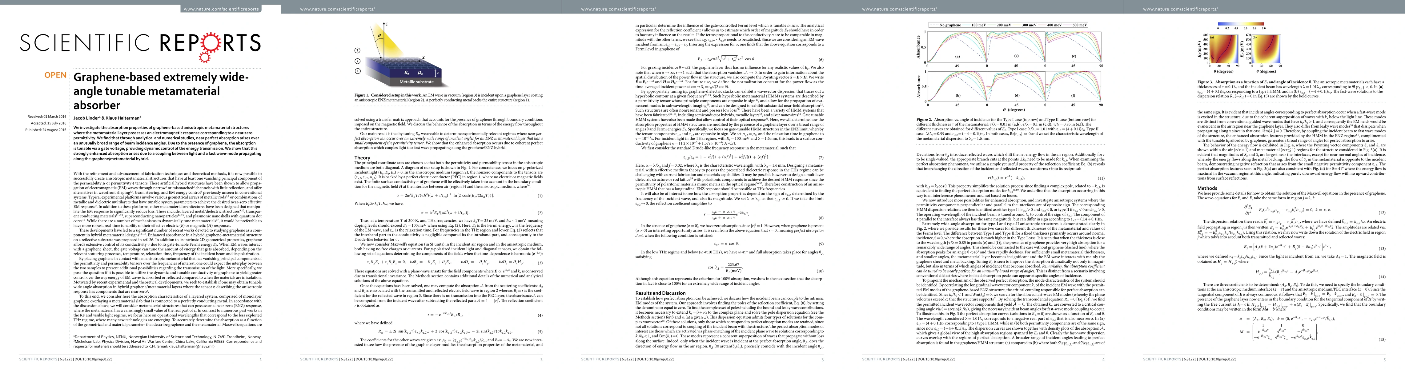 The development of a graphene-based extremely wide-angle tunable metamaterial absorber with high absorption efficiency and tunability.
