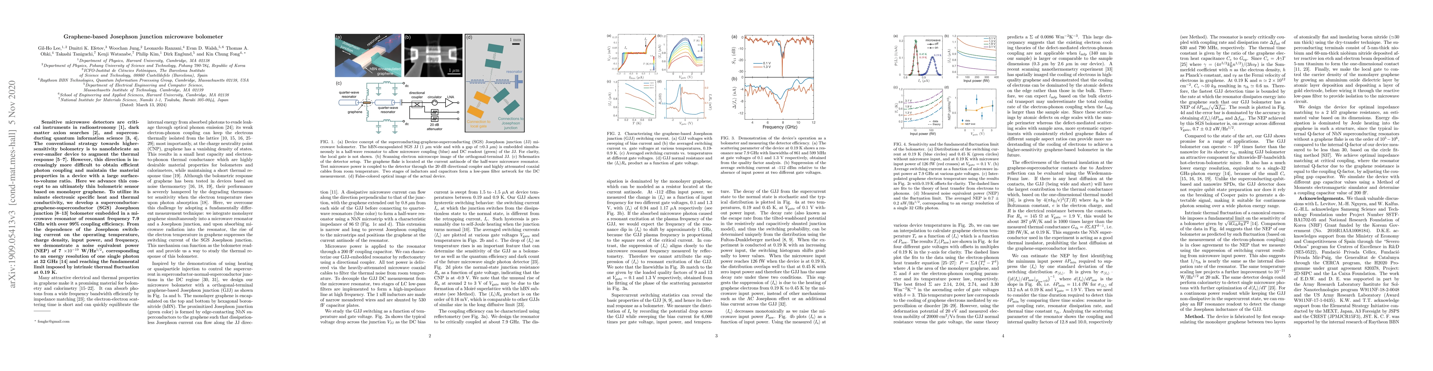 Sensitive microwave detectors are critical instruments in radioastronomy, dark matter axion searches, and superconducting quantum information science. The conventional strategy towards higher-sensitivity bolometry is to nanofabricate an ever-smaller device to augment the thermal response. However, this direction is increasingly more difficult to obtain efficient photon coupling and maintain the material properties in a device with a large surface-to-volume ratio. Here we advance this concept to an ultimately thin bolometric sensor based on monolayer graphene. To utilize its minute electronic specific heat and thermal conductivity, we develop a superconductor-graphene-superconductor (SGS) Josephson junction bolometer embedded in a microwave resonator of resonant frequency 7.9 GHz with over 99\% coupling efficiency. From the dependence of the Josephson switching current on the operating temperature, charge density, input power, and frequency, we demonstrate a noise equivalent power (NEP) of 7 $\times 10^{-19}$ W/Hz$^{1/2}$, corresponding to an energy resolution of one single photon at 32 GHz and reaching the fundamental limit imposed by intrinsic thermal fluctuation at 0.19 K.