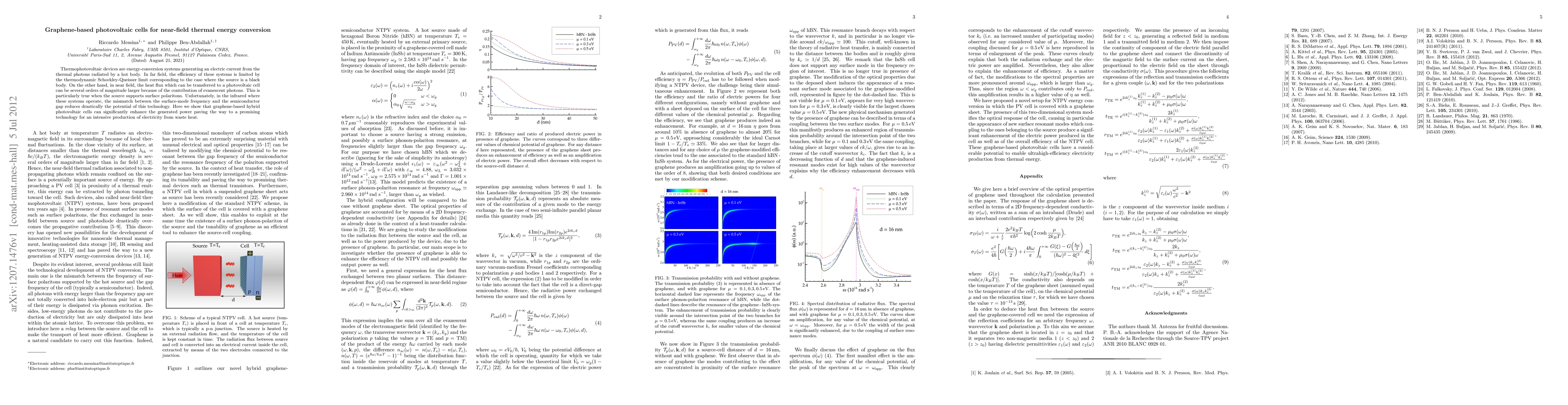 This paper explores the use of graphene-based photovoltaic cells for near-field thermal energy conversion, demonstrating that they can significantly enhance power generation compared to traditional systems, overcoming limitations in infrared operation due to surface polaritons.