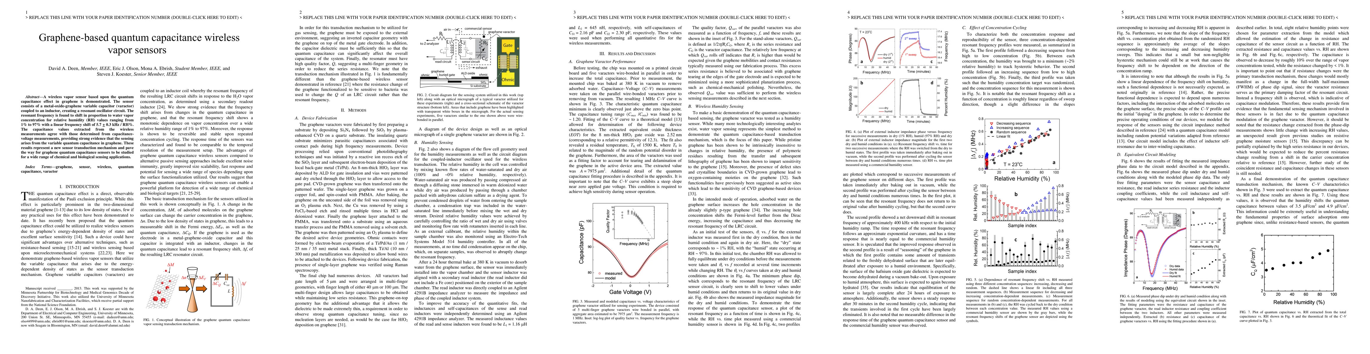 This paper demonstrates a wireless vapor sensor utilizing graphene's quantum capacitance effect, showing a linear frequency shift in a resonant oscillator circuit proportional to water vapor concentration. The sensor's accuracy is validated by comparing wireless measurements with capacitance-voltage measurements.