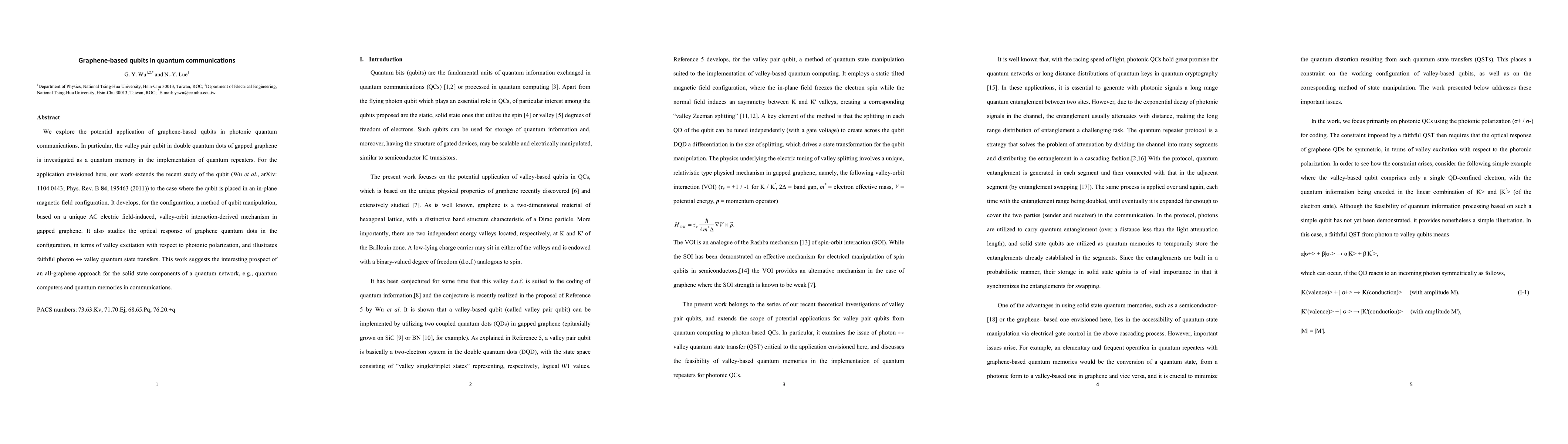 This research investigates the application of valley pair qubits in double quantum dots of gapped graphene for quantum communications, proposing a new method for qubit manipulation using an AC electric field-induced valley-orbit interaction. It also examines the optical response of graphene quantum dots, demonstrating effective photon-valley quantum state transfers, suggesting an all-graphene approach for quantum network components.