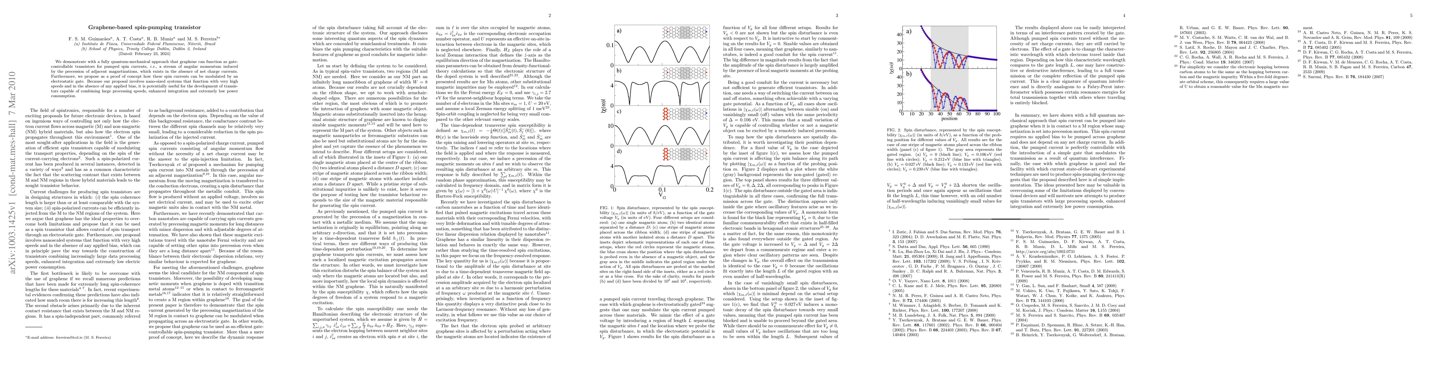 We demonstrate with a fully quantum-mechanical approach that graphene can function as gate-controllable transistors for pumped spin currents, i.e., a stream of angular momentum induced by the precession of adjacent magnetizations, which exists in the absence of net charge currents. Furthermore, we propose as a proof of concept how these spin currents can be modulated by an electrostatic gate. Because our proposal involves nano-sized systems that function with very high speeds and in the absence of any applied bias, it is potentially useful for the development of transistors capable of combining large processing speeds, enhanced integration and extremely low power consumption.