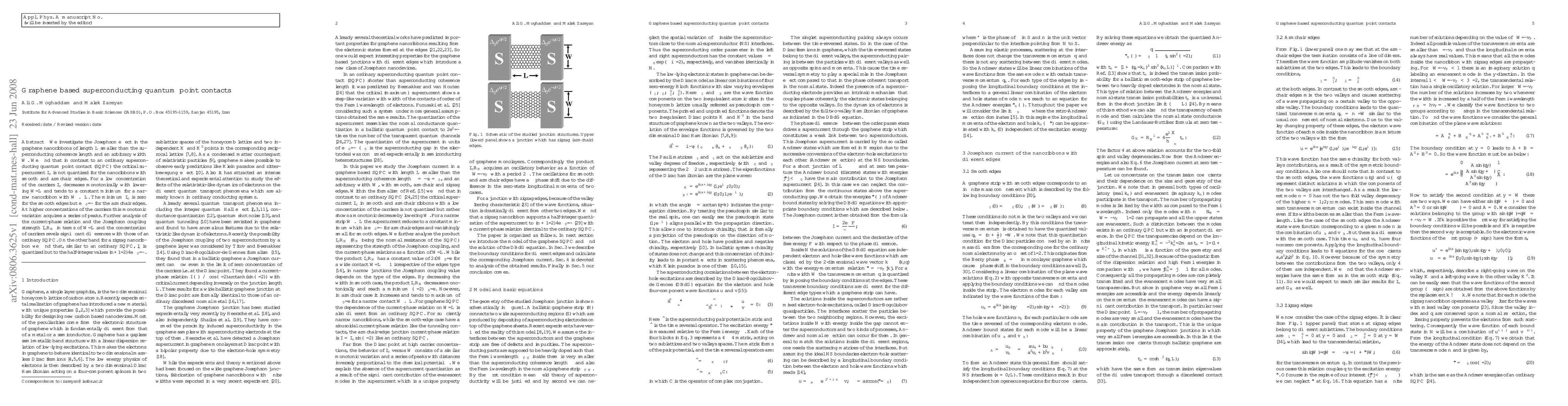 Graphene nanoribbons exhibit unique superconducting quantum point contact behavior, with critical current Ic varying monotonically with width-to-length ratio and quantization occurring for zigzag edges.