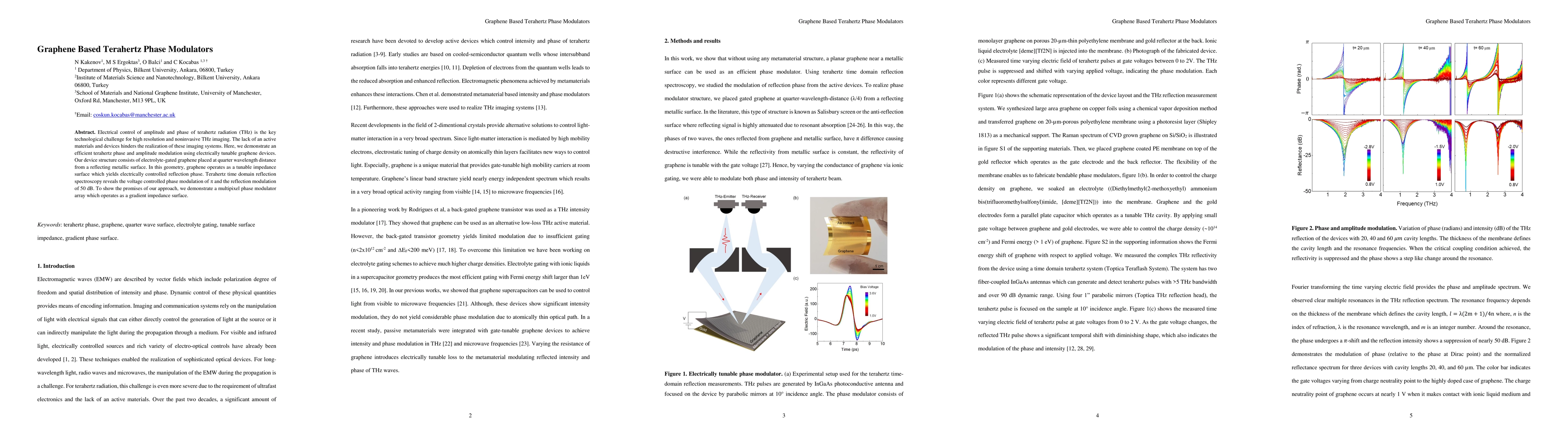 The paper presents a novel graphene-based terahertz phase modulator that utilizes electrostatic control of charge density on graphene to achieve tunable optical conductivity and surface impedance for efficient modulation of terahertz waves.