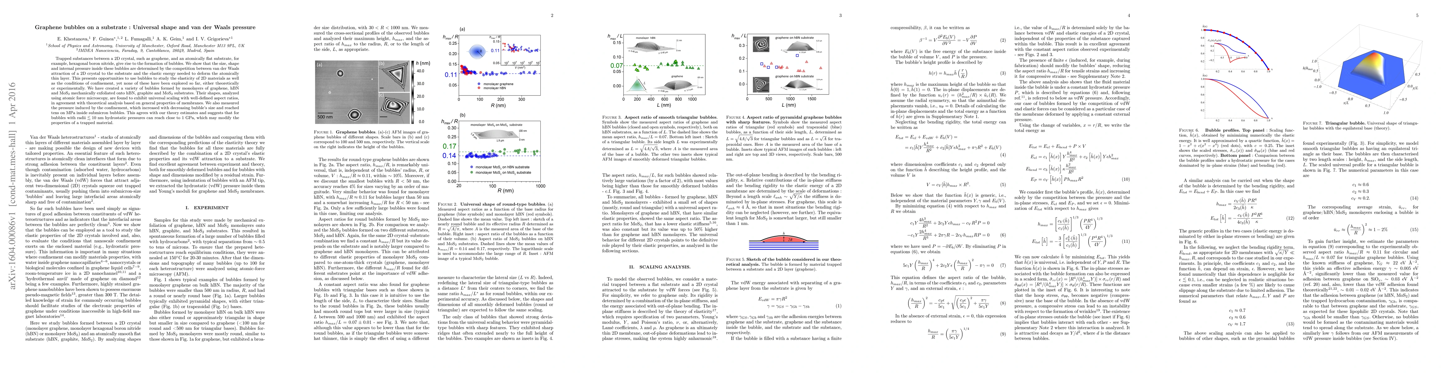 Researchers created bubbles of graphene, hBN, and MoS2 on substrates, revealing universal shapes and pressures determined by van der Waals attraction and elastic energy, offering new insights into 2D material elasticity and confinement conditions.