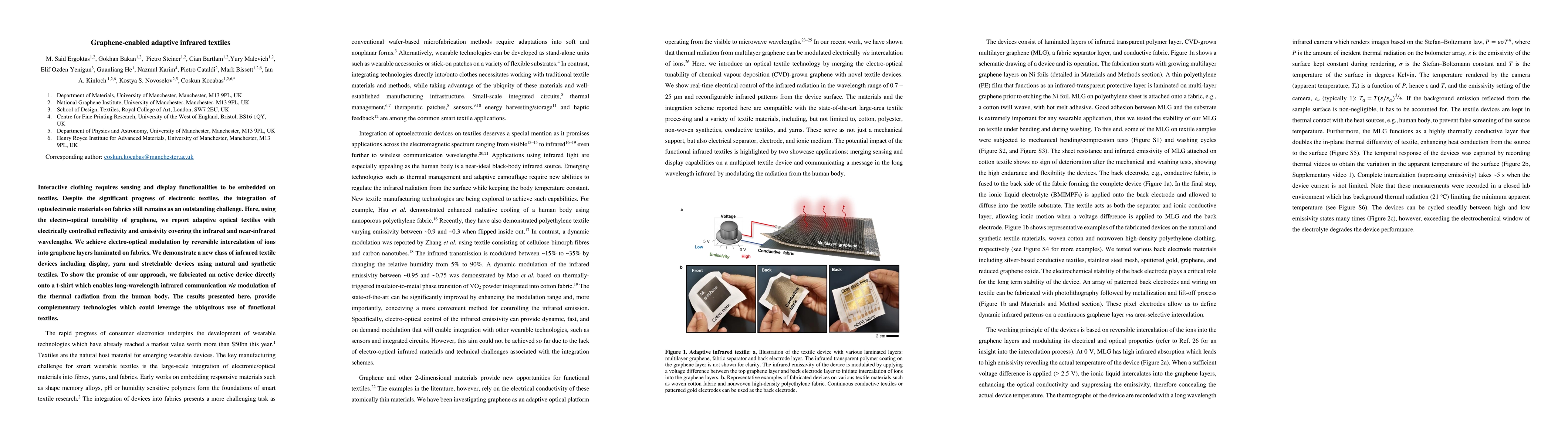 This work presents a unique combination of graphene's unique properties with textile integration, opening new avenues for smart textiles with infrared control capabilities.