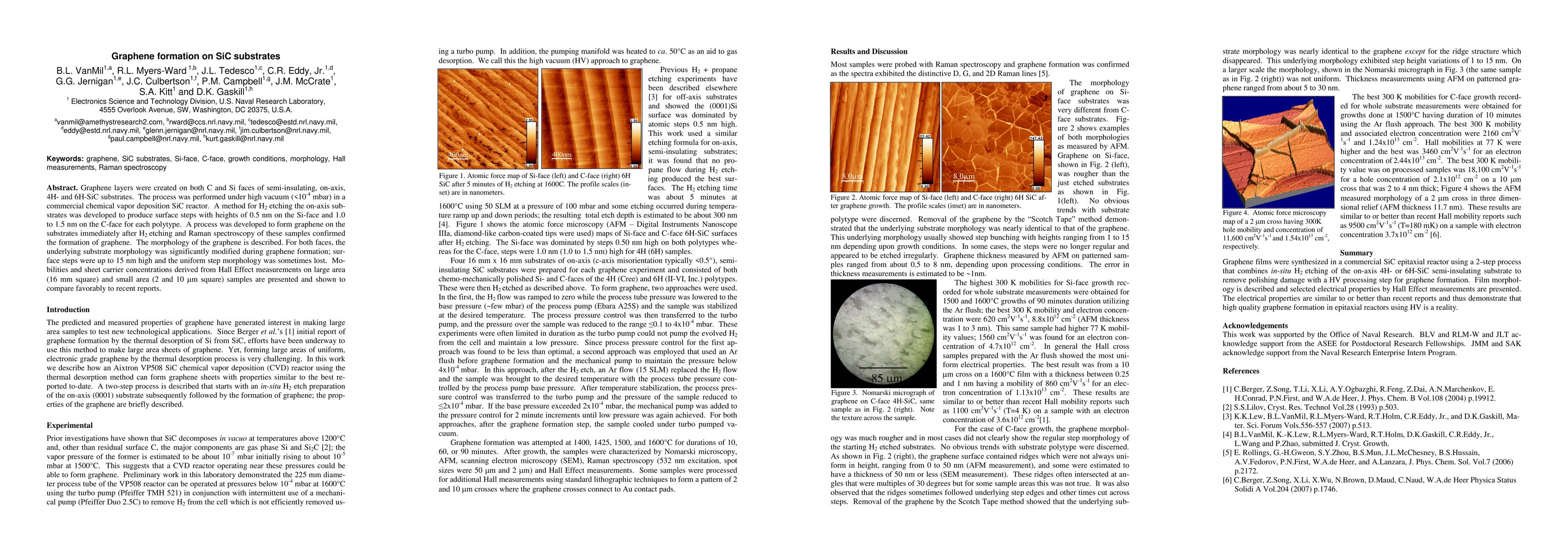 Researchers developed a method for forming high-quality graphene layers on both C and Si faces of semi-insulating 4H- and 6H-SiC substrates using chemical vapor deposition, confirmed by Raman spectroscopy. The process included H2 etching to create surface steps, modifying the substrate morphology and achieving comparable Hall Effect measurements to recent reports.