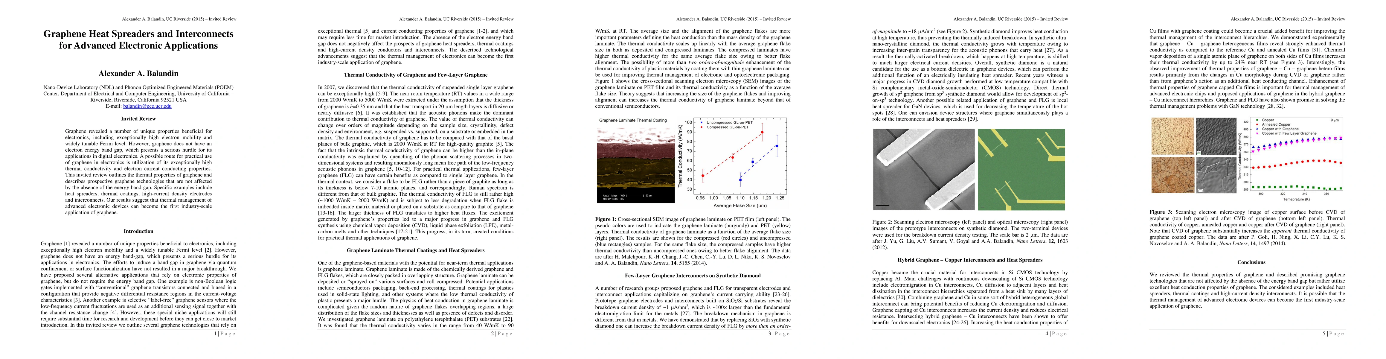 This paper reviews graphene's exceptional thermal conductivity and electron mobility, highlighting its potential in electronic applications despite lacking an electron energy band gap. It focuses on graphene heat spreaders, thermal coatings, and interconnects as promising technologies for advanced electronic devices, suggesting thermal management as a first industry-scale application of graphene.