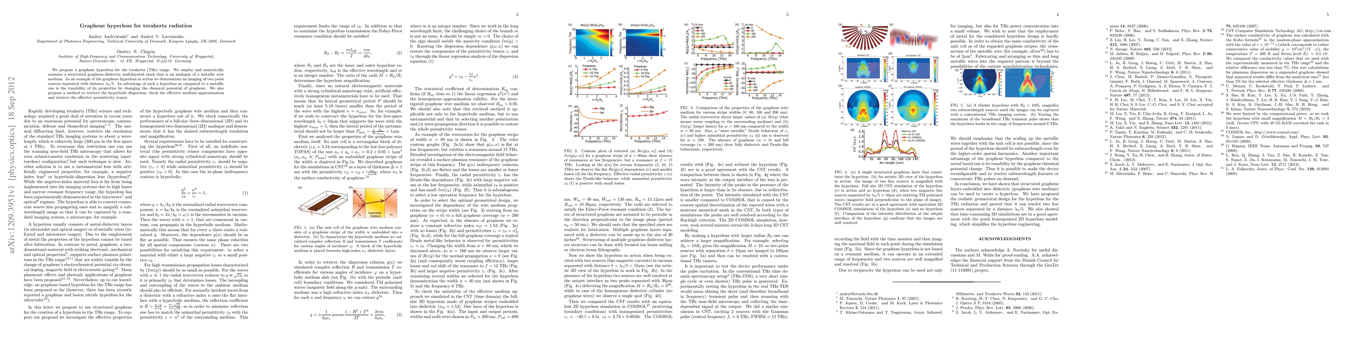 This paper proposes a graphene hyperlens for terahertz imaging, demonstrating its ability to resolve objects separated by a distance of $\lambda_{0}/5$. The tunability of graphene's properties via chemical potential adjustment offers advantages over metallic hyperlenses.
