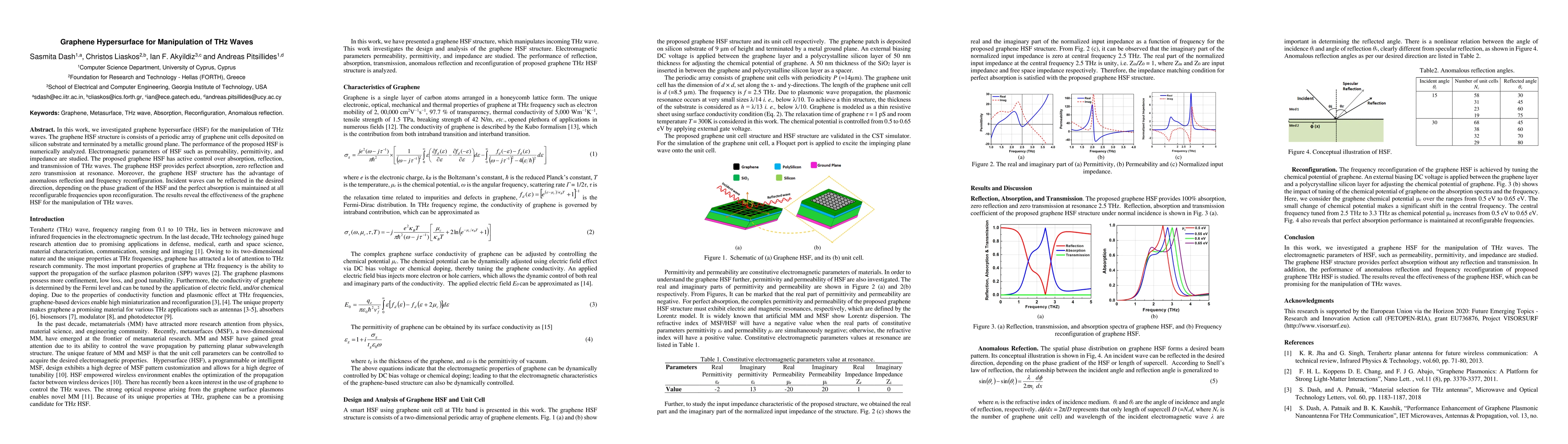 Researchers developed a graphene structure called a hypersurface that can control the absorption, reflection, and transmission of THz waves. It provides perfect absorption at resonance and allows for anomalous reflection and frequency reconfiguration.