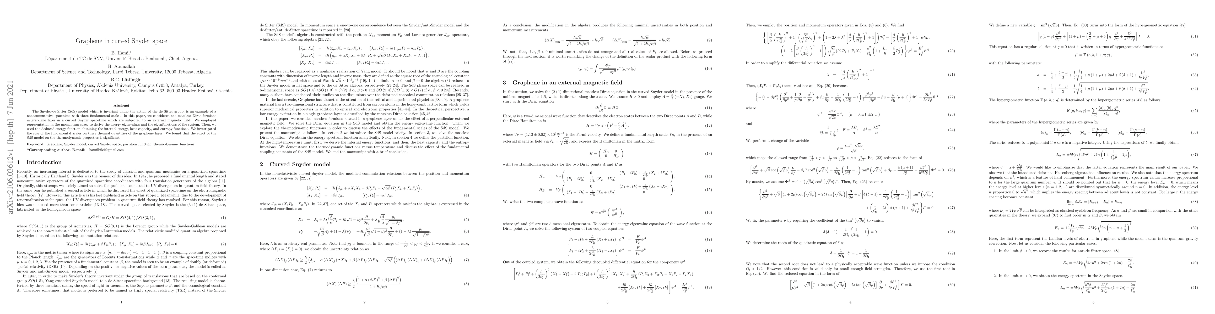 This paper explores massless Dirac fermions in graphene within a curved Snyder-de Sitter spacetime under an external magnetic field, deriving energy eigenvalues and eigenfunctions in momentum space. It reveals significant effects of the fundamental scales on the internal energy, heat capacity, and entropy of the graphene layer.