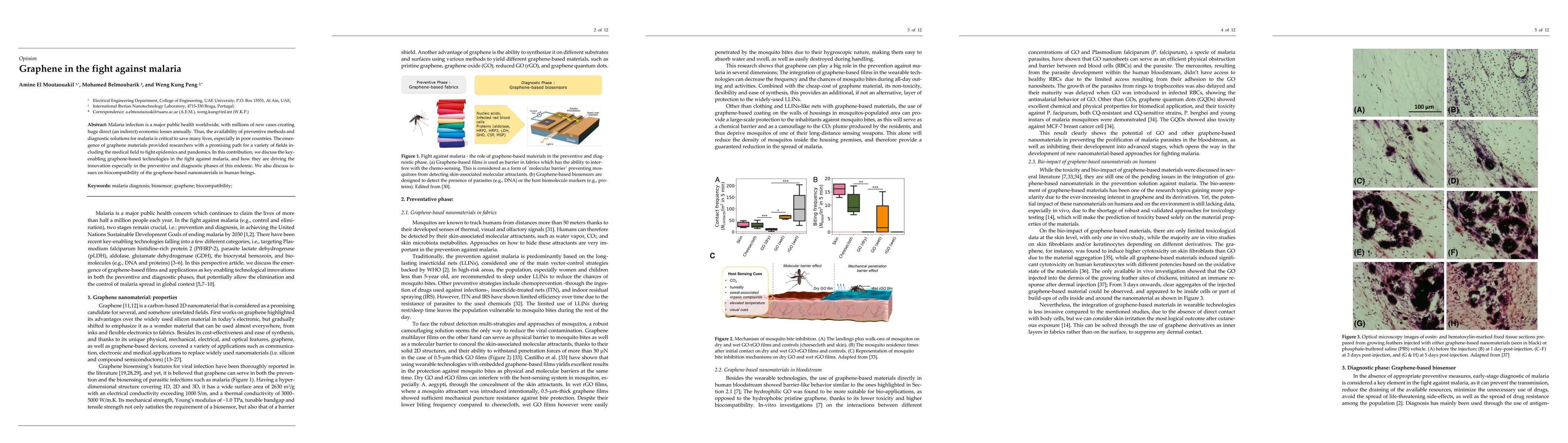 Malaria infection is a major public health worldwide, with millions of new cases and creating huge direct (an indirect) economic losses annually. Thus, the availability of preventive methods and diagnostic solutions for malaria is critical to save many lives, especially in poor countries. The emergence of graphene materials provided researchers with a promising path for a variety of fields including the medical field to fight epidemics and pandemics. In this contribution, we discuss the key-enabling graphene-based technologies in the fight against malaria, and how they are driving the innovation especially in the preventive and diagnostic phases of this endemic.