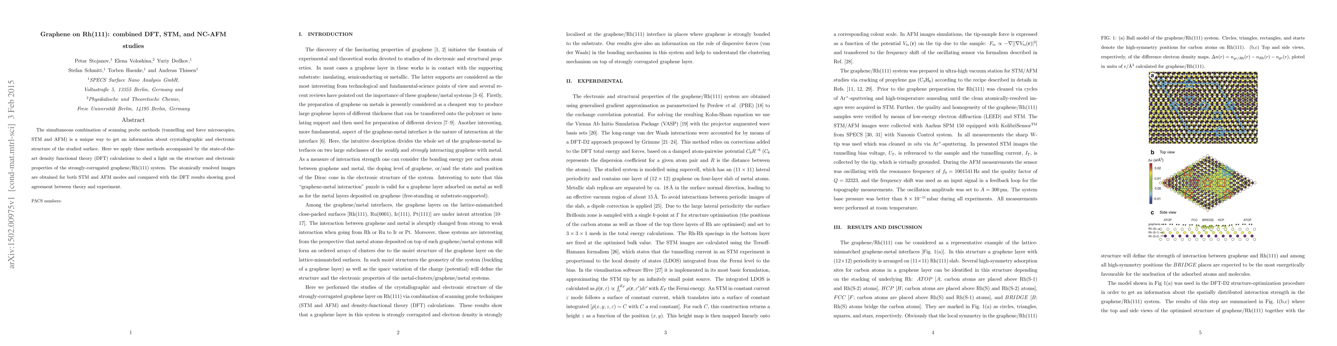 This study uses combined density functional theory (DFT) calculations, scanning tunneling microscopy (STM), and non-contact atomic force microscopy (NC-AFM) to investigate the structure and electronic properties of graphene on Rh(111). The results show strong agreement between atomically resolved images from STM and AFM and theoretical predictions.