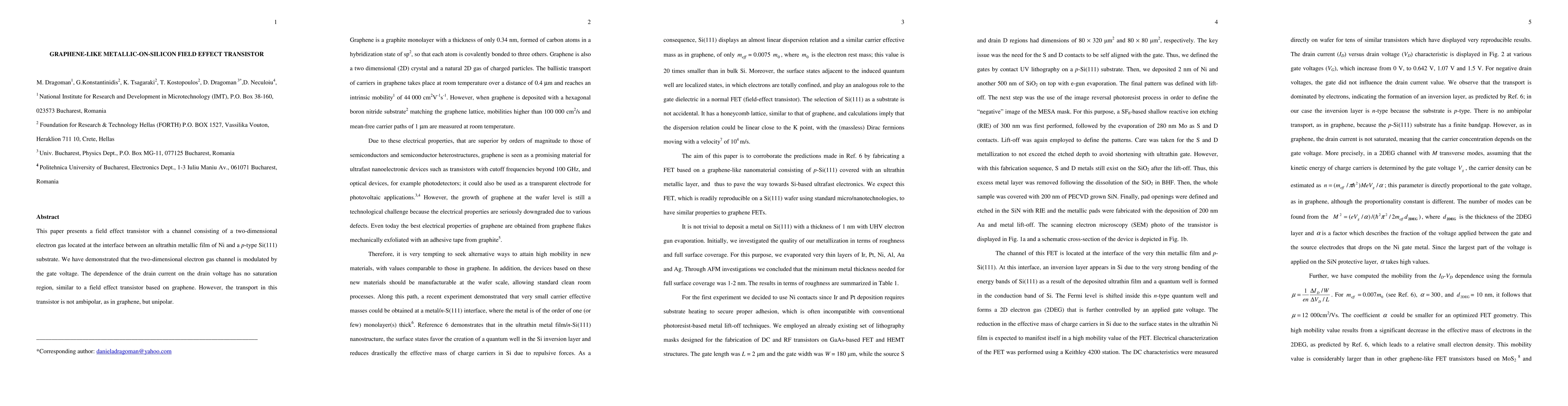 This research introduces a field effect transistor with a two-dimensional electron gas channel at the interface between a thin Ni film and p-type Si(111), showing modulation by gate voltage. Unlike graphene-based FETs, this transistor exhibits unipolar transport rather than ambipolar.
