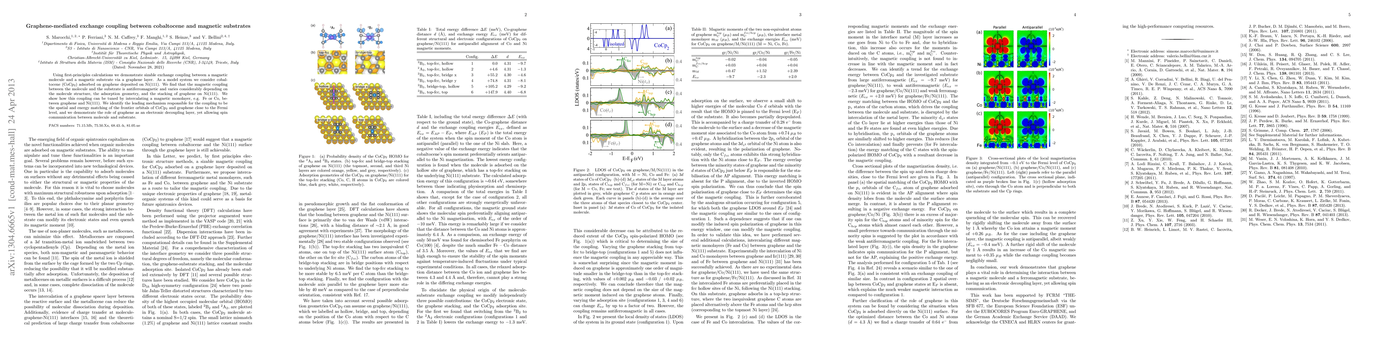 Researchers demonstrated exchange coupling between a magnetic molecule (cobaltocene) and a substrate (Ni(111)) via graphene, with the coupling varying depending on molecular structure and graphene stacking. This discovery shows promise for tuning magnetic interactions through graphene-based interfaces.