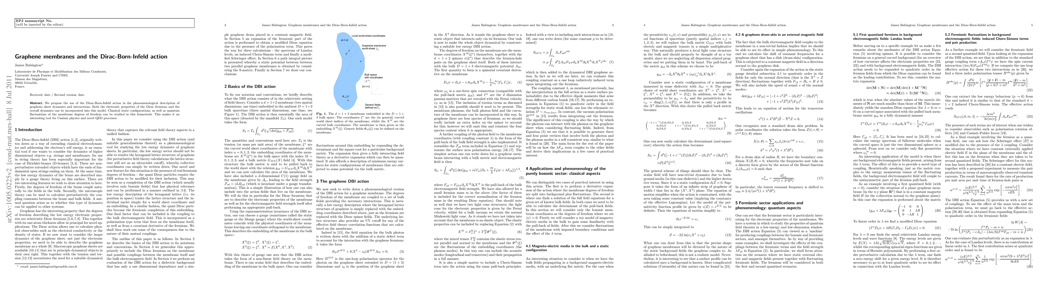Researchers propose using the Dirac-Born-Infeld action to describe graphene sheet dynamics and interactions, incorporating electronic properties and membrane degrees of freedom for study of Casimir physics and novel QED processes.