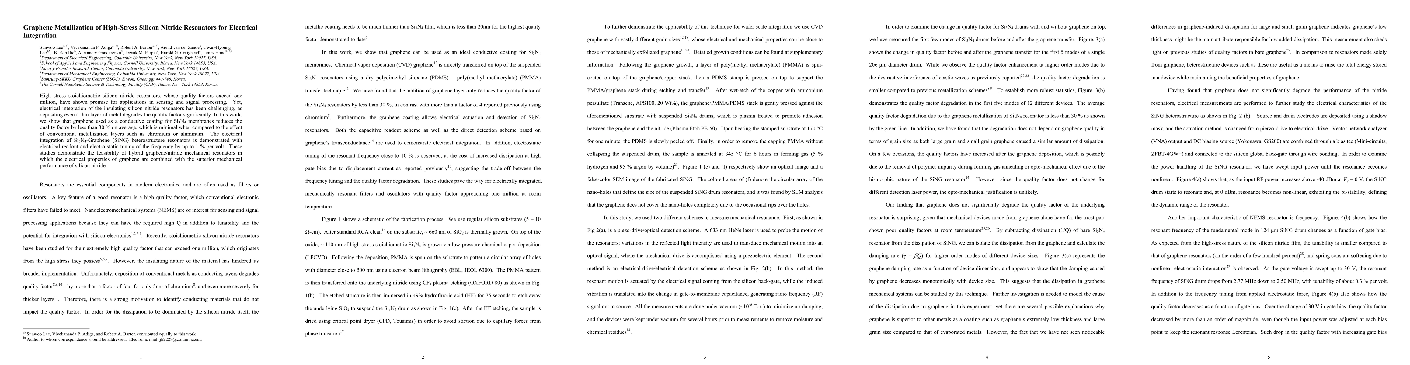 This paper explores the use of graphene as a conductive coating for high-stress silicon nitride resonators, achieving minimal degradation in quality factor compared to conventional metal metallization. The graphene-coated resonators demonstrate electrical readout and frequency tuning, showcasing the potential of hybrid graphene/nitride resonators.
