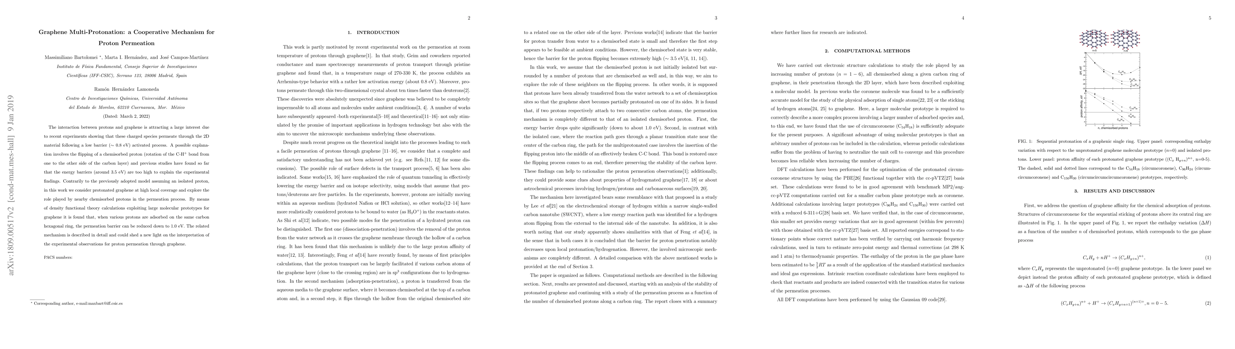 This paper explores the cooperative mechanism of multi-protonation in graphene, revealing that the presence of nearby chemisorbed protons significantly lowers the proton permeation barrier to 1.0 eV, as opposed to the previously high 3.5 eV barrier, providing a better explanation for experimental observations.
