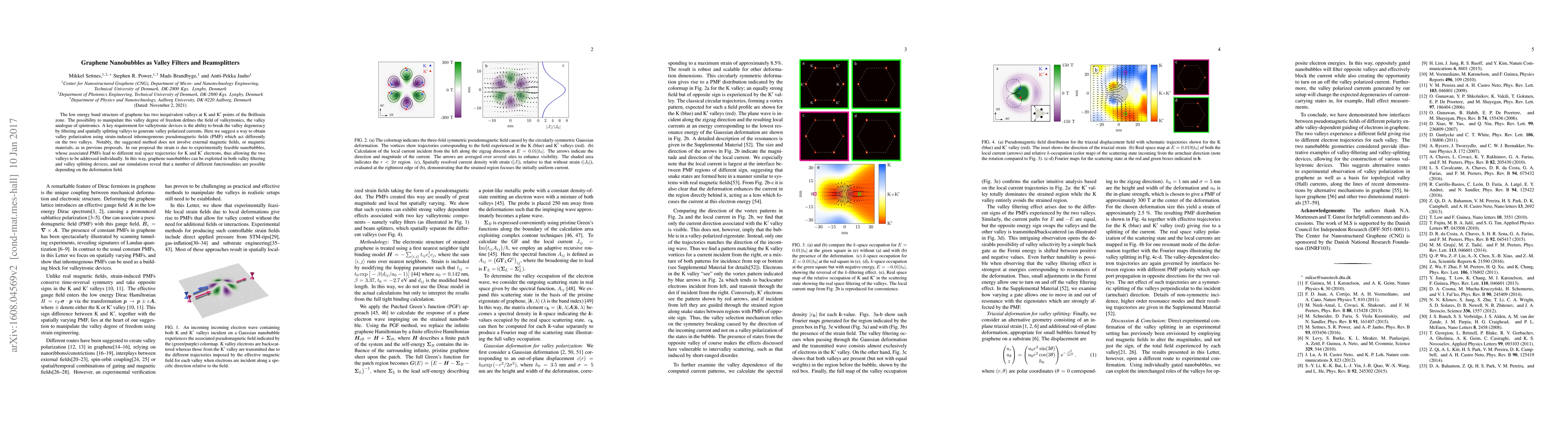 Graphene nanobubbles can induce pseudomagnetic fields that selectively manipulate the valley degrees of freedom in graphene, enabling valley filtering and splitting without external magnetic fields, thus supporting valleytronic device functionalities. Simulations show diverse functionalities achievable through varying the deformation field of the nanobubbles.