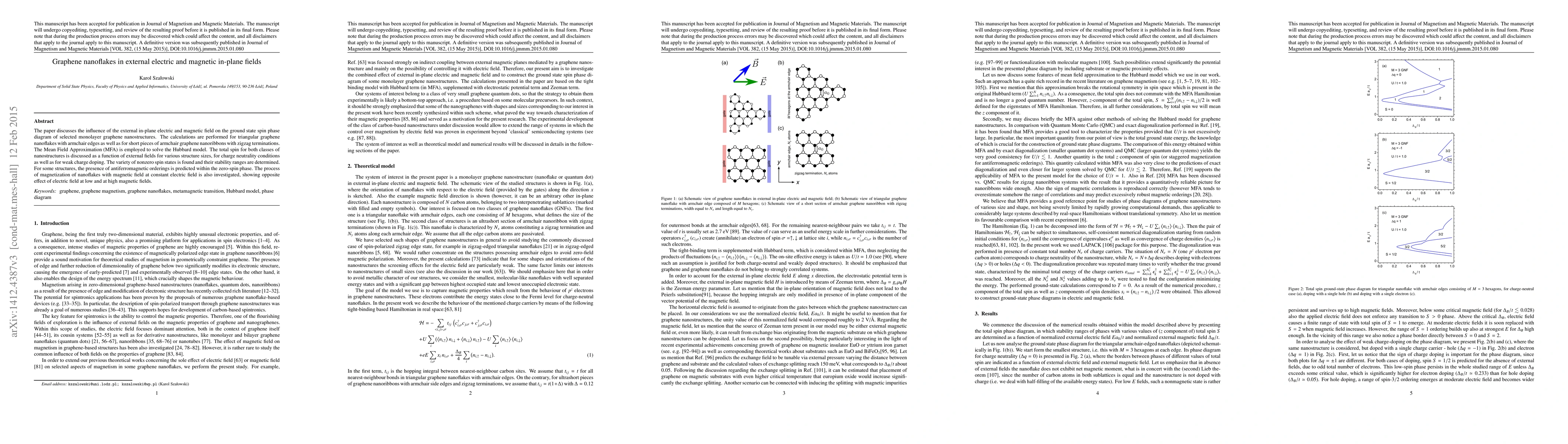 This research examines how in-plane electric and magnetic fields affect the spin phase diagram of triangular graphene nanoflakes and armchair graphene nanoribbons using the Mean Field Approximation to solve the Hubbard model. It reveals diverse nonzero spin states and antiferromagnetic orderings, and shows differing magnetization responses under varying field conditions.